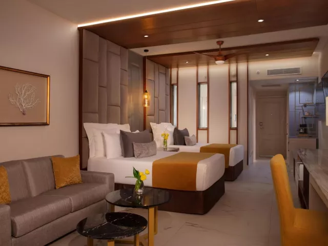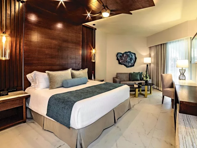 Izby, ako napríklad Junior suite tropical view, sú vybavené kúpeľňou s WC a sušičom vlasov, klimatizáciou, ventilátorom, kávovarom, LCD TV/satelitom, telefónom, trezorom a minibarom (denne dopĺňaným nealkoholickými nápojmi, vodou a pivom). Ostatné typy izieb zahŕňajú Junior suite, pool view (výhľad na bazén), Junior suite, private pool (súkromný bazén) a Junior suite, Preferred club, tropical view ( služby Preferred Club).