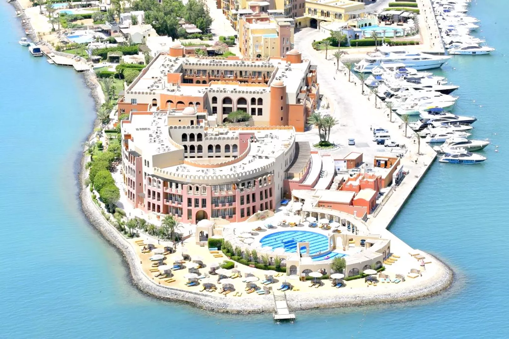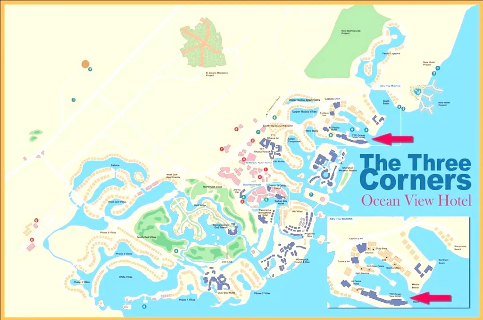 Hotel leží v novovytvorenej štvrti El Gouna Abu Tig Marina, pričom je vzdialený približne 1 km od živého centra a 800 metrov od dlhých piesočnatých pláží, ktoré sú dostupné hotelovým shuttle busom. V tesnej blízkosti sú aj bary, reštaurácie a obchody.