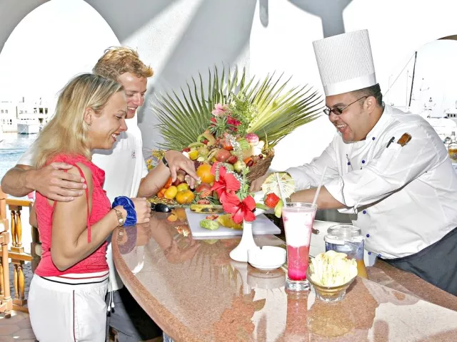 Hotel ponúka koncept All Inclusive, ktorý zahŕňa raňajky, obedy a večere podávané formou bufetu, občerstvenie počas dňa a miestne alkoholické a nealkoholické nápoje. Raňajky sú organizované v hlavnej reštaurácii a nápoje sú dostupné v baroch pri bazéne a pláži.