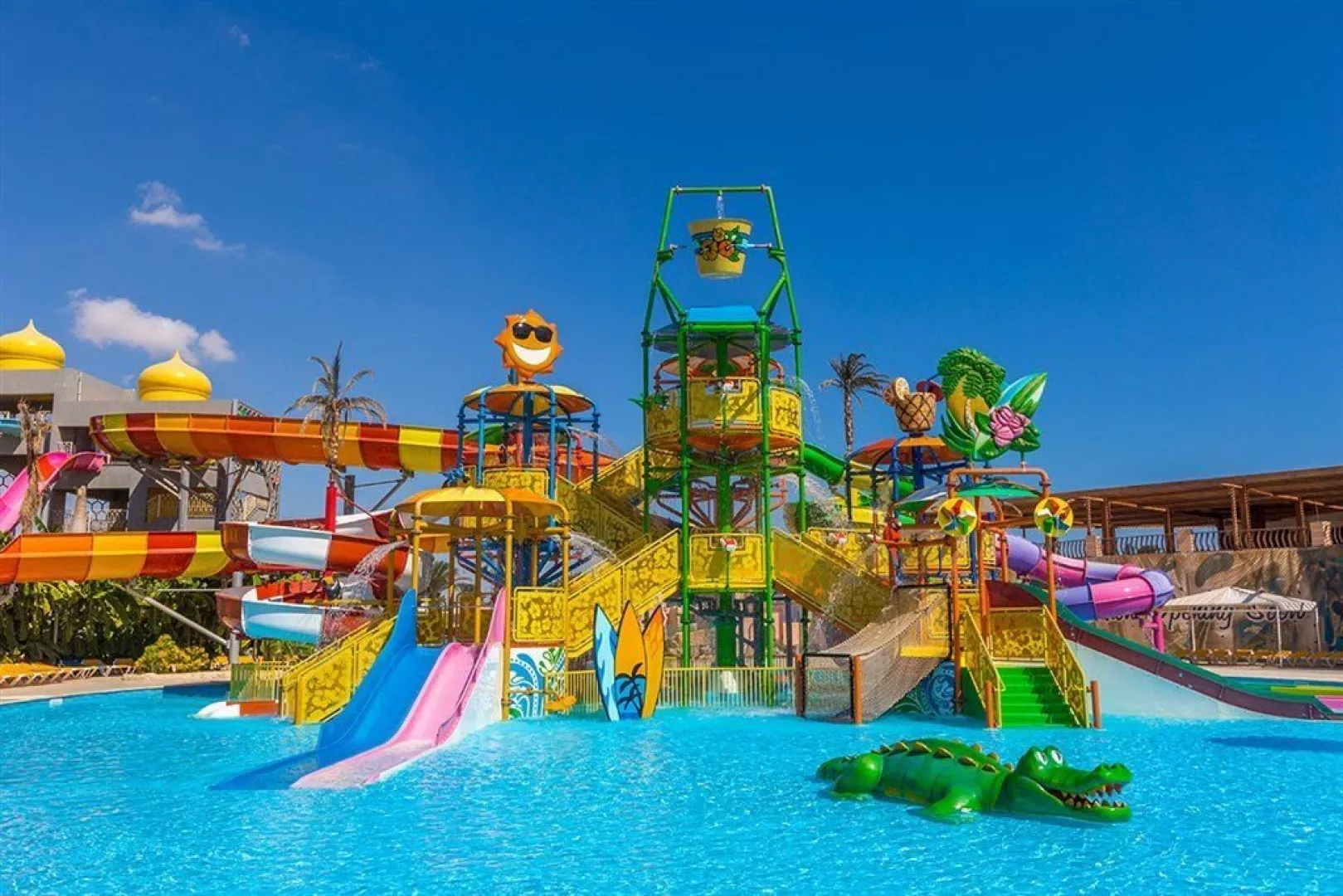 Rozľahlý hotelový komplex s rozlohou 134 400 m² sa môže pochváliť vlastnou súkromnou plážou a je priaznivo situovaný blízko kultúrnych pamiatok. Odporúča sa pre menej náročných klientov a rodiny s deťmi.