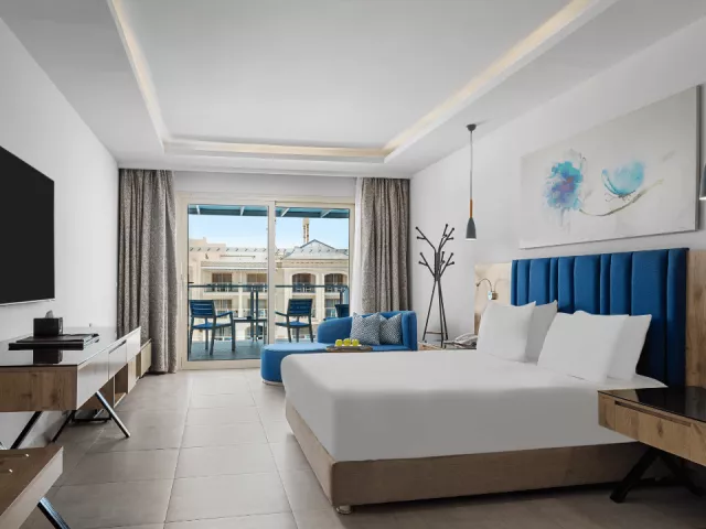 Hotel ponúka rôzne varianty izieb, ako sú dvojlôžkové izby Deluxe s výhľadom na bazén alebo more a priestranné izby Elite s bočným alebo priamym výhľadom na more. Vybavenie izieb zahŕňa individuálne ovládateľnú klimatizáciu, telefón, TV so satelitným príjmom, minibar, set na prípravu čaju a kávy, trezor a vlastné sociálne zariadenie.