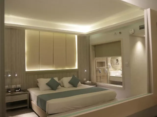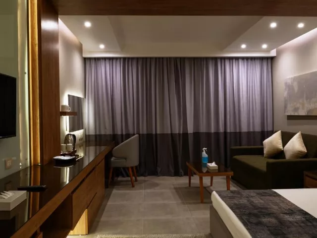 Hotel ponúka 644 izieb, ktoré sú moderné a pohodlné. Vybavenie zahŕňa klimatizáciu, telefón, SAT TV, chladničku a kúpeľňu. Izby sú orientované na záhradu, bazén alebo more, pričom ponúkajú aj priestrannejšie rodinné izby s poschodovou posteľou alebo prepojené izby. Všetky izby majú balkón alebo terasu.