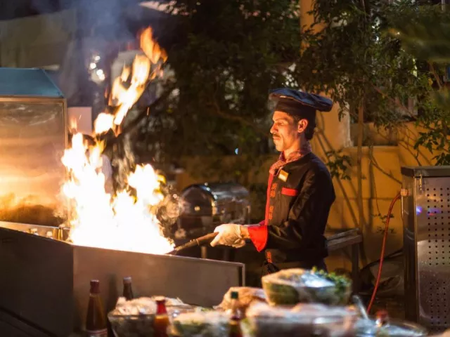 Služby stravovania sú poskytované formou All Inclusive, čo zahŕňa raňajky, obedy a večere formou bufetu. Návštevníci si môžu vychutnať neskoré raňajky a popoludňajšie občerstvenie. Miestne alkoholické a nealkoholické nápoje sú podávané od 9:00 do polnoci.
