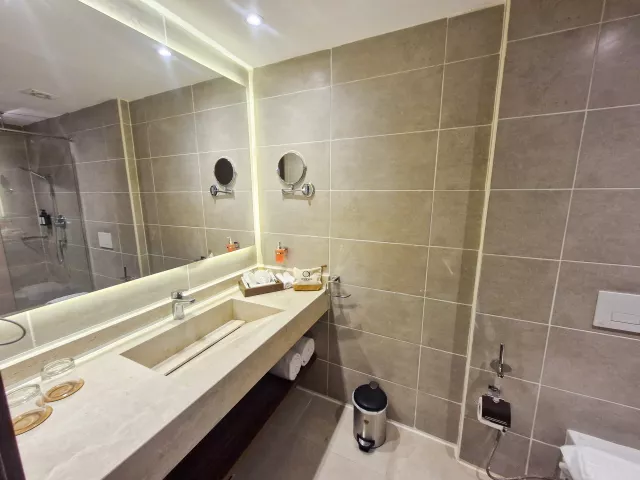 Vybavenie izieb zahŕňa kúpeľňu/WC, klimatizáciu, telefón, TV/sat., Wi-Fi, trezor, minibar (s doplňovanou vodou) a set na prípravu kávy/čaju, balkón alebo terasu.