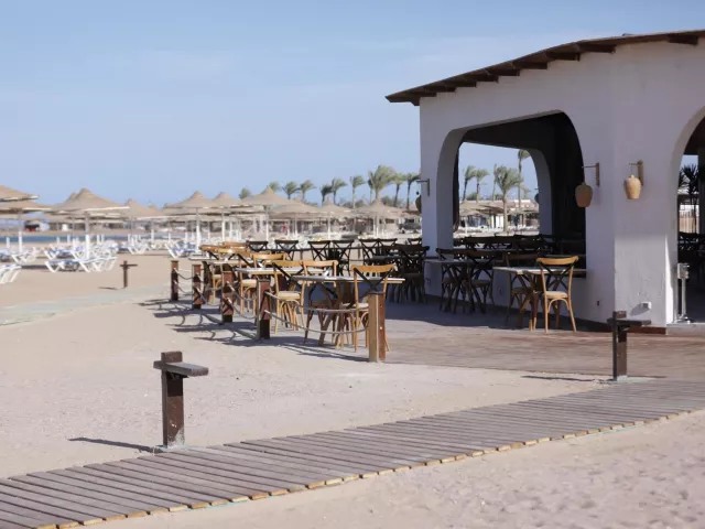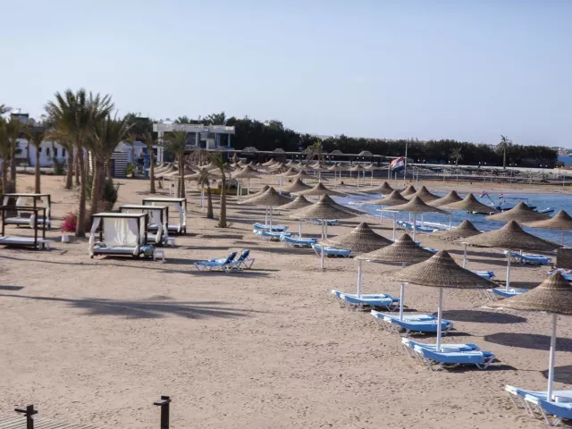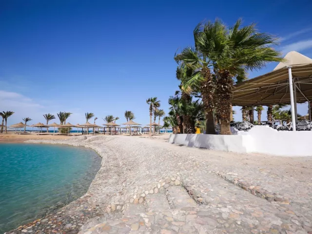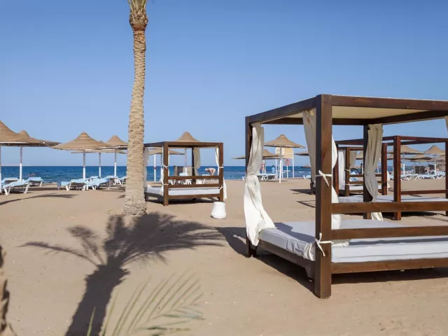 Hotel má súkromnú piesočnatú pláž s pozvoľným vstupom do mora. Plážový servis zahŕňa ležadlá, slnečníky a osušky zdarma. Kyvadlová doprava na pláž je zabezpečená každých 15 minút.