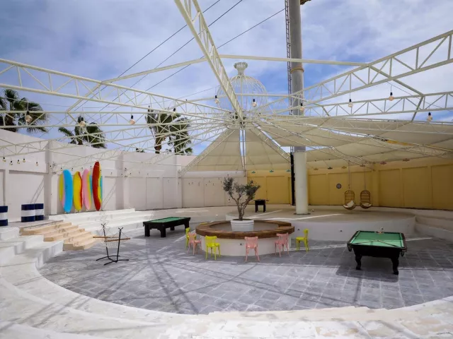 Hotel disponuje 5-poschodovou hlavnou budovou a ďalšími štyrmi dvojpodlažnými budovami a ôsmimi jednopodlažnými bungalovmi. Celkový počet izieb je 319. K vybaveniu patrí recepcia, lobby, hlavná reštaurácia, špecializované reštaurácie (indická a ázijská), 8 barov, dva bazény (z toho jeden vyhrievaný), detský bazén, detské ihrisko, mini klub, aquapark a fitness. Rôzne športové aktivity sú dostupné zadarmo, existujú aj služby za príplatok ako masáže, sauna a vodné športy.