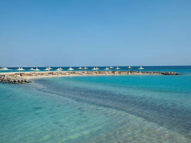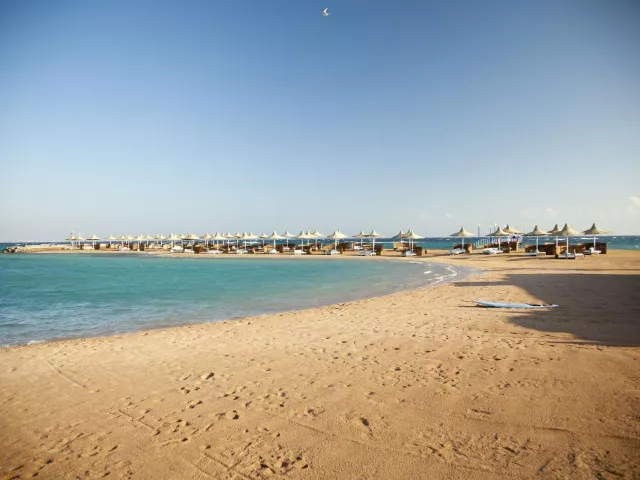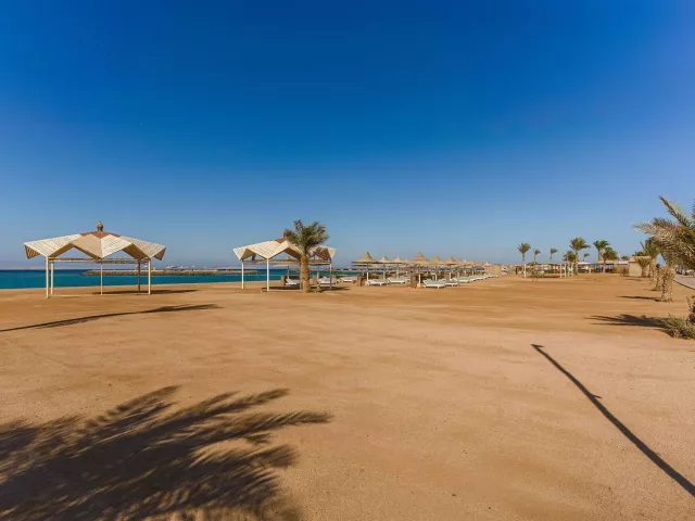 Hotel disponuje súkromnou piesočnatou plážou s pozvoľným vstupom do mora, ktorá je považovaná za jednu z najkrajších v Hurghade. Na pláži sú dostupné lehátka, slnečníky a osušky zdarma, ako aj bar a sprchy.