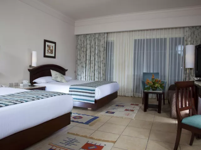 Hotel ponúka rôzne typy izieb, vrátane klimatizovaných dvojlôžkových izieb s telefónom, TV so satelitným príjmom, minibarom (za príplatok), kúpeľňou, trezorom (zdarma) a balkónom alebo terasou. Dostupné sú aj superior a deluxe izby pri pláži a s výhľadom na more.