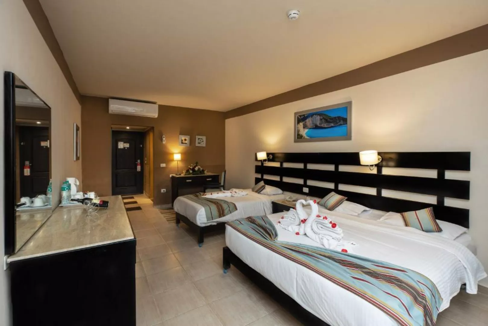 Dvojlôžková izba je vybavená individuálne ovládanou klimatizáciou, telefónom, satelitnou TV, minibarom (za poplatok), kúpeľňou/WC (so sušičom vlasov) a trezorom (zdarma). Izby majú balkón alebo okno. K dispozícii sú aj jednolôžkové izby a rodinné izby, ktoré sú priestrannejšie a ponúkajú výhľad na bazén alebo more.
