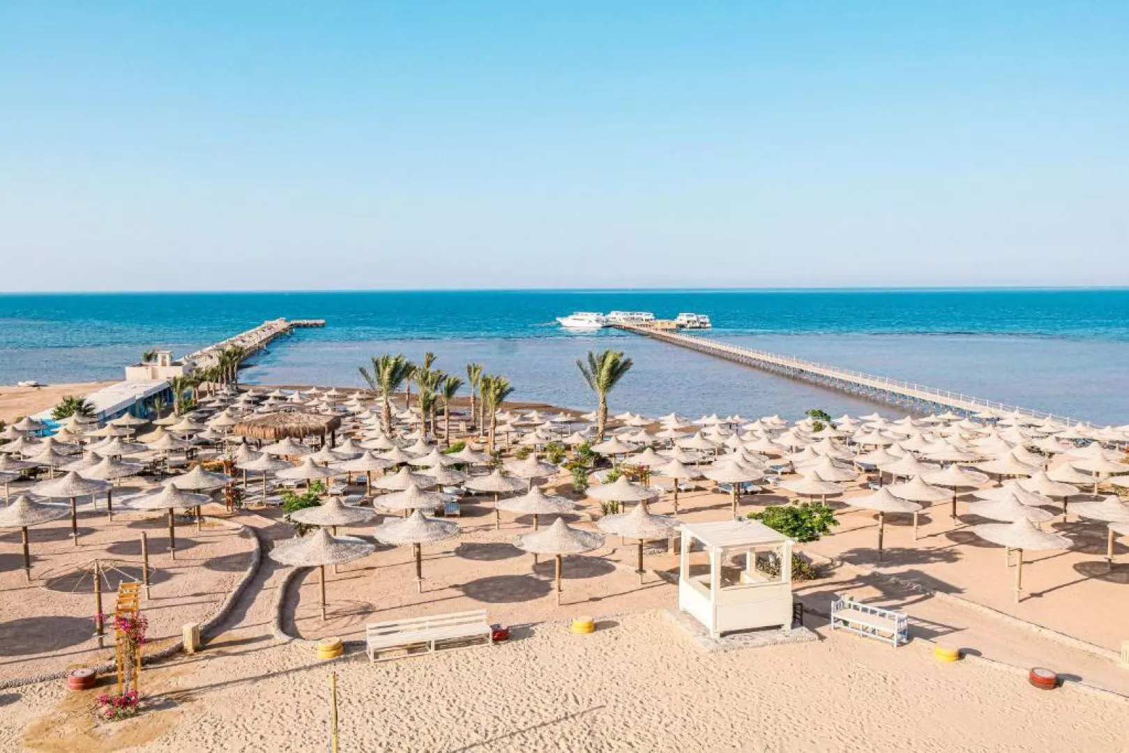 Piesočnatá pláž s pozvoľným vstupom a koralovým podložím sa nachádza v blízkosti hotela. Je vybavená mólom s tromi vstupmi do mora. K dispozícii sú ležadlá, slnečníky a osušky zdarma, ako aj plážový bar.
