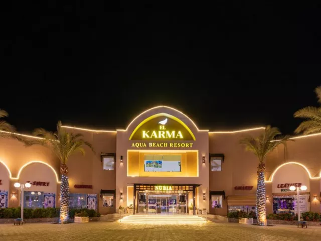 Hotelový rezort El Karma Aqua Beach Resort sa nachádza priamo na piesočnatej pláži. Je vhodný pre všetky vekové kategórie, vrátane rodín s deťmi, ktoré ocenia detské aktivity, detské ihrisko, šmykľavky a animačné programy. Areál hotela sa skladá z hlavnej budovy a dvoch trojposchodových vedľajších budov obklopených bazénovým komplexom. Hotel leží severne od centra Hurghady, v oblasti El Gouna, 11 km od centra mesta a 17 km od letiska v Hurghade.
