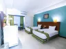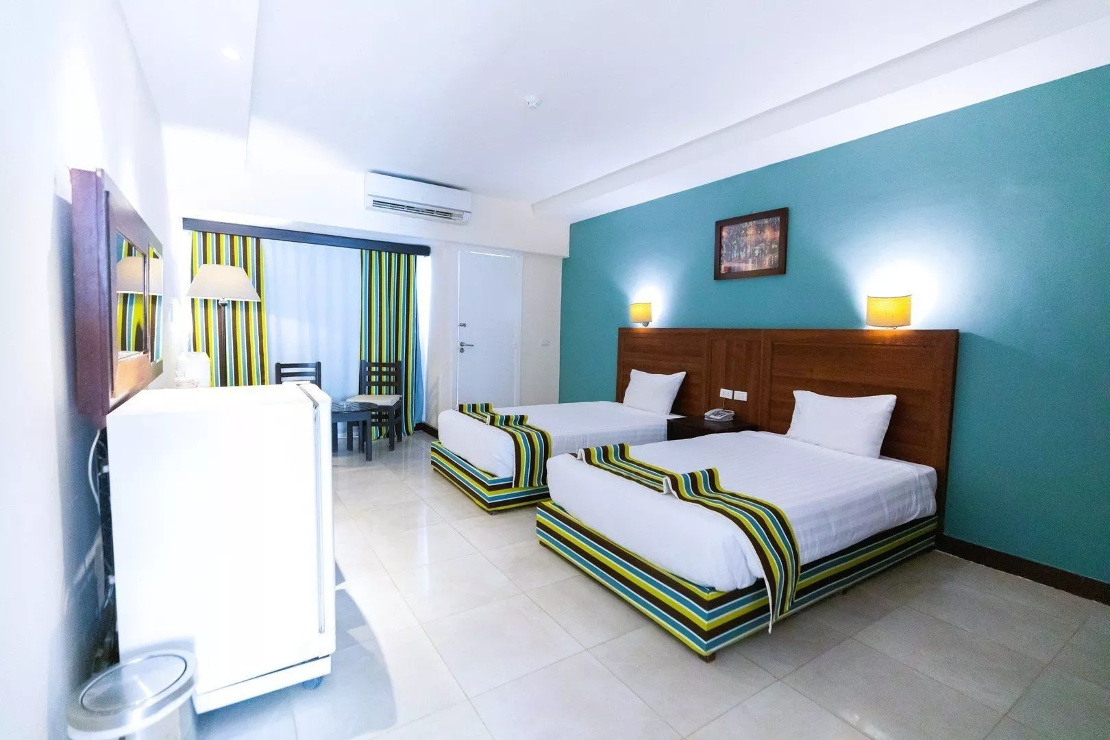 Izby sú vybavené klimatizáciou, kúpeľňou, TV, minibarom a balkónom alebo terasou. K dispozícii sú rôzne typy izieb vrátane jednolôžkových a trojlôžkových s prísteľkami.