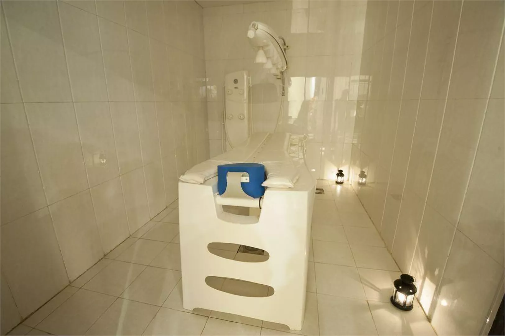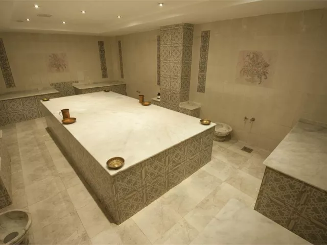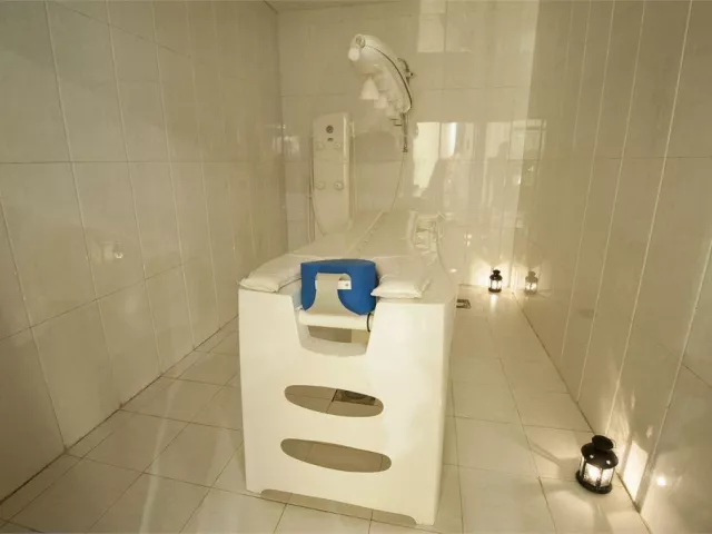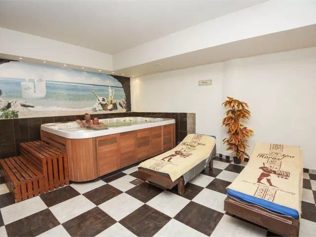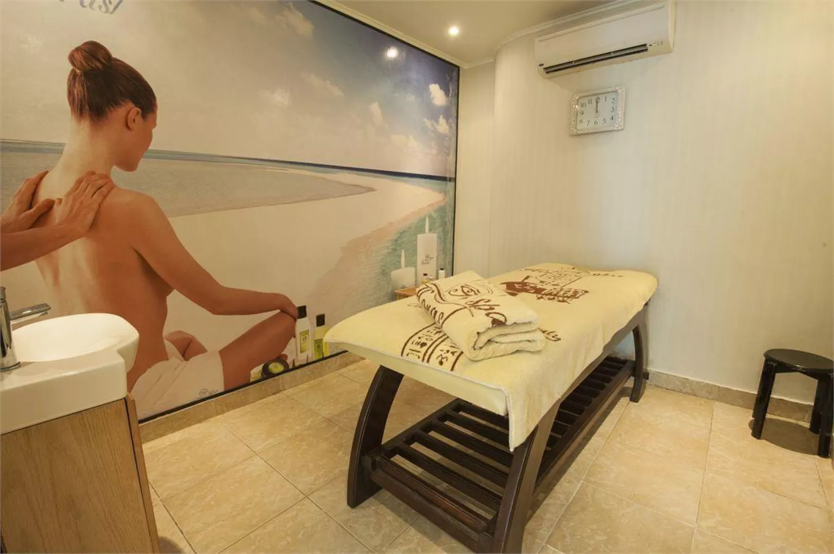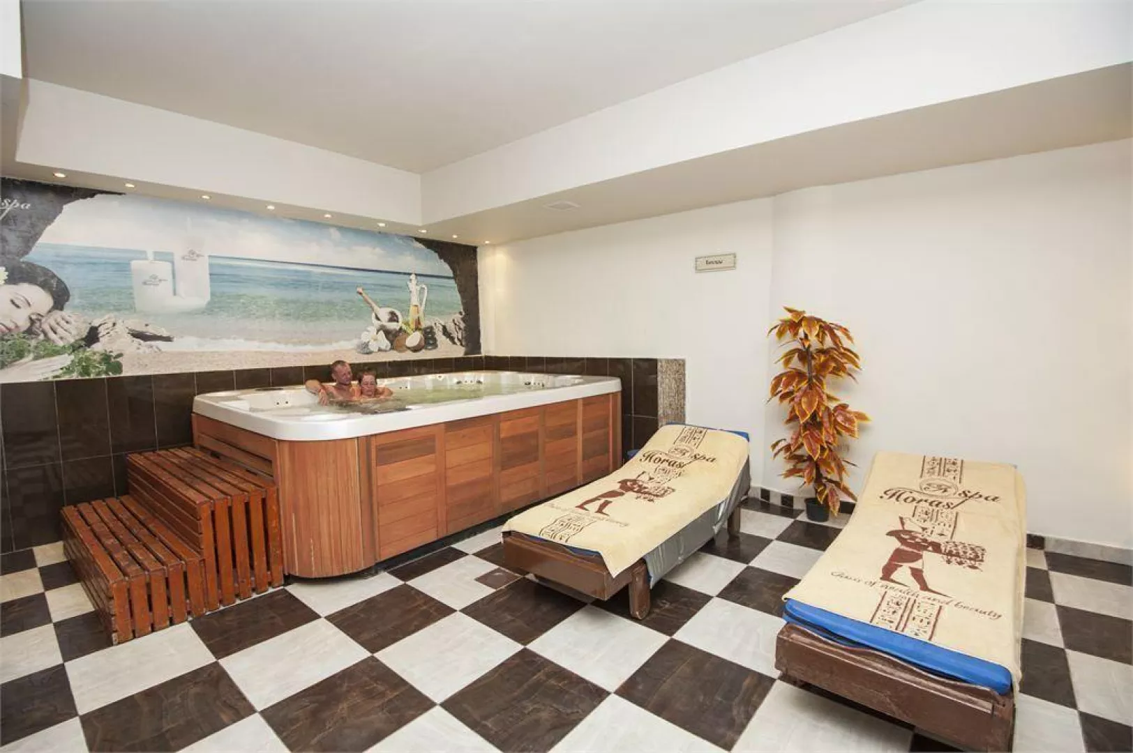 Pláž s jemným pieskom ponúka vstup do mora cez betónové schody. Pre návštevníkov sú k dispozícii ležadlá, slnečníky a plážové osušky bez poplatku, ako aj plážový bar.