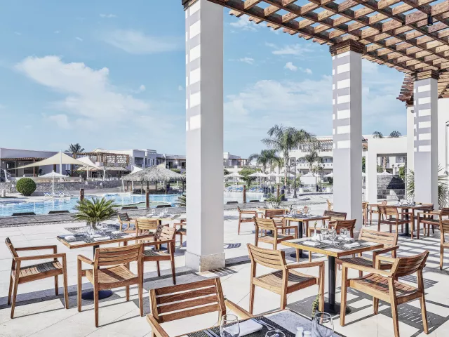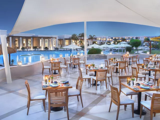 Hotel ponúka koncept all inclusive, ktorý zahŕňa tri hlavné jedlá denne formou bufetu, ako aj neobmedzené množstvo miestnych alkoholických a nealkoholických nápojov. K dispozícii sú snacky, koláče a večere v á la carte reštaurácii (bezplatne raz za pobyt).