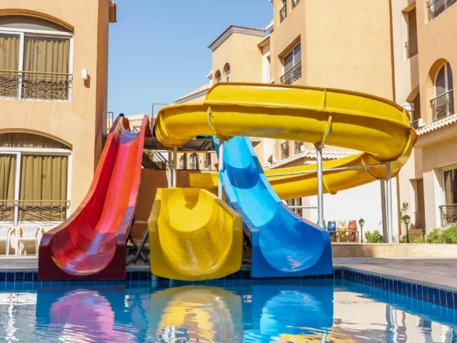 Hotel pozostáva z 4 poschodí a ponúka 205 izieb. K dispozícii je recepcia, lobby s Wi-Fi, hlavná reštaurácia, à la carte reštaurácia, 3 bary a 4 bazény vrátane detského bazéna. Hostia môžu využiť aquapark s 5 tobogánmi a detské ihrisko pre deti vo veku od 4 do 12 rokov.