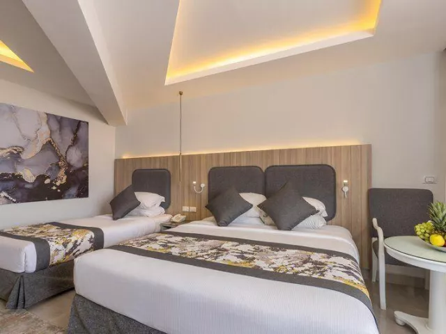 Hotel ponúka 2-lôžkové štandardné izby s možnosťou 1 alebo 2 prísteliek, ktoré sú priestranné (43 m²). Vybavenie zahŕňa individuálne ovládateľnú klimatizáciu, telefón, TV so satelitným príjmom, minibar, vlastné sociálne zariadenie (kúpeľňa, sušič vlasov, WC), trezor a balkón alebo terasu. Disponibilné sú aj rodinné izby (45 m²) rozdelené na dve miestnosti, ako aj vyššie kategórie ako izba Deluxe a izba Premium či Deluxe Premium.
