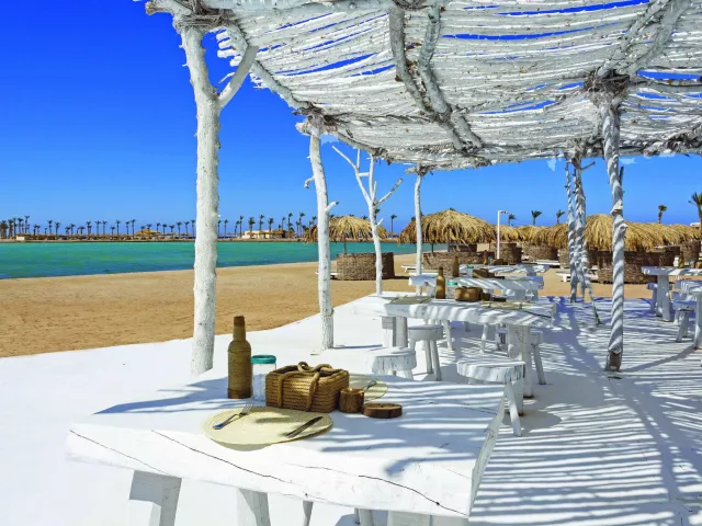 Hotel disponuje tri vonkajšími bazénmi (vrátane jedného vyhrievaného v zime), vonkajšou vírivkou, hlavnou reštauráciou Munchery a viacerými á la carte reštauráciami, ktoré ponúkajú egyptskú, ázijskú, grécku a rôzne ďalšie kuchyne. K dispozícii sú aj bary, ako lobby bar, bazénové bary a plážové bary.