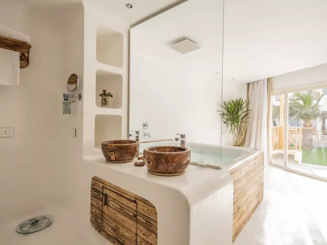 Izby sú moderne zariadené a vybavené sprchou, toaletnými potrebami, sušičom vlasov, televízorom, telefónom, minibarom (za poplatok), súpravou na prípravu čaju a kávy, trezorom a Wi-Fi pripojením zdarma. Vybrané izby majú balkón alebo terasu s výhľadom na záhradu alebo more.
