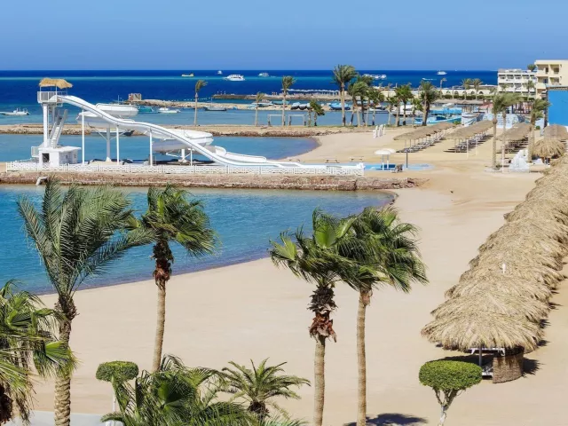 Vlastná piesočnatá pláž s dĺžkou 2,6 km ponúka slnečníky, ležadlá a plážové osušky zadarmo. Na pláži sú umiestnené aj tobogány.