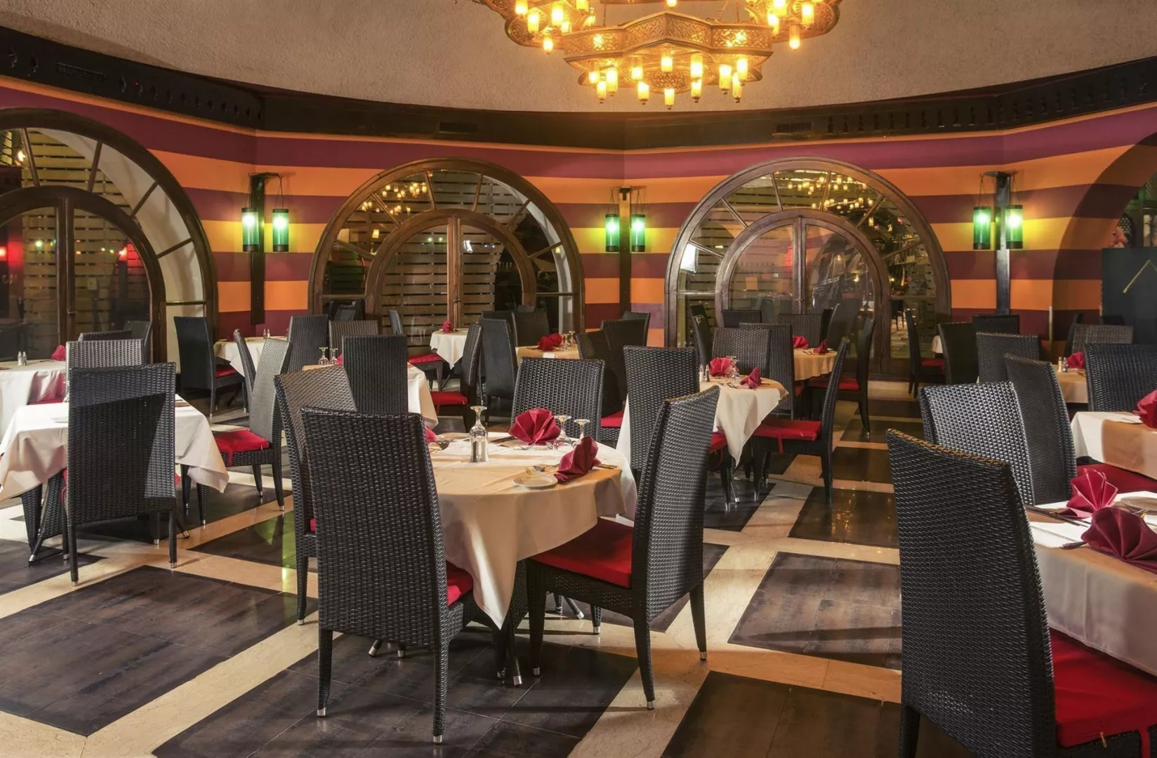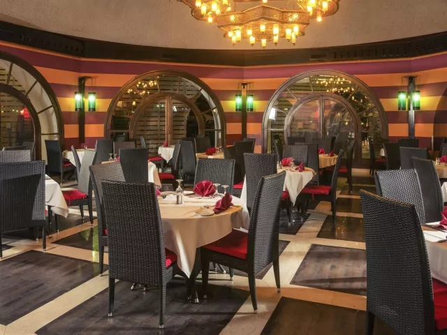 3 vonkajšie bazény (1 vyhrievaný bazén v zime) hlavná reštaurácia Dar El Andalus orientálna reštaurácia ala carte (orientálna kuchyňa) talianska reštaurácia ala carte (talianska kuchyňa) rybia reštaurácia ala carte (rybia reštaurácia, za poplatok) plážový bar 2 bary pri bazéne Ultra bar Azur bar diskotéka (platená) salónik s vodnou fajkou