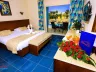 Izby sú štandardne dvojlôžkové s možnosťou prísteliek, pričom rodinné izby sú dvojizbové. Každá izba má klimatizáciu, vlastnú kúpeľňu, sušič na vlasy, TV, minibar, trezor a balkón alebo terasu.