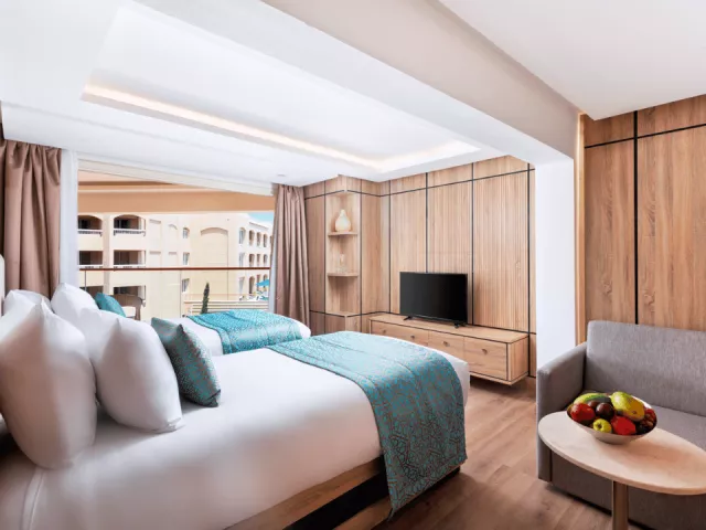 Izby sú rôzne: od štandardných izieb, cez rodinné izby až po bungalovy. Štandardné vybavenie obsahuje kúpeľňu so sprchou, klimatizáciu, minibar, trezor a balkón alebo terasu. Pre rodiny sú k dispozícii priestrannejšie izby s dvoma prepojenými miestnosťami.