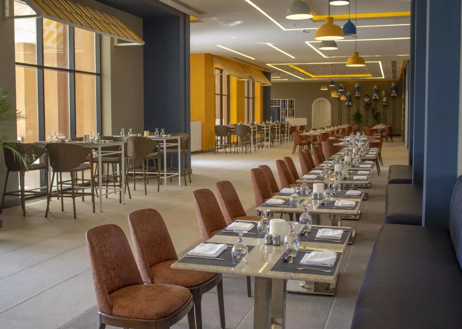 All inclusive zahŕňa raňajky, obedy a večere formou bufetu. Počas dňa sú k dispozícii ľahké občerstvenia a neobmedzené množstvo nealkoholických a miestnych alkoholických nápojov. Poskytuje sa aj neskoré raňajky a neskoré večere v špeciálnych reštauráciách.