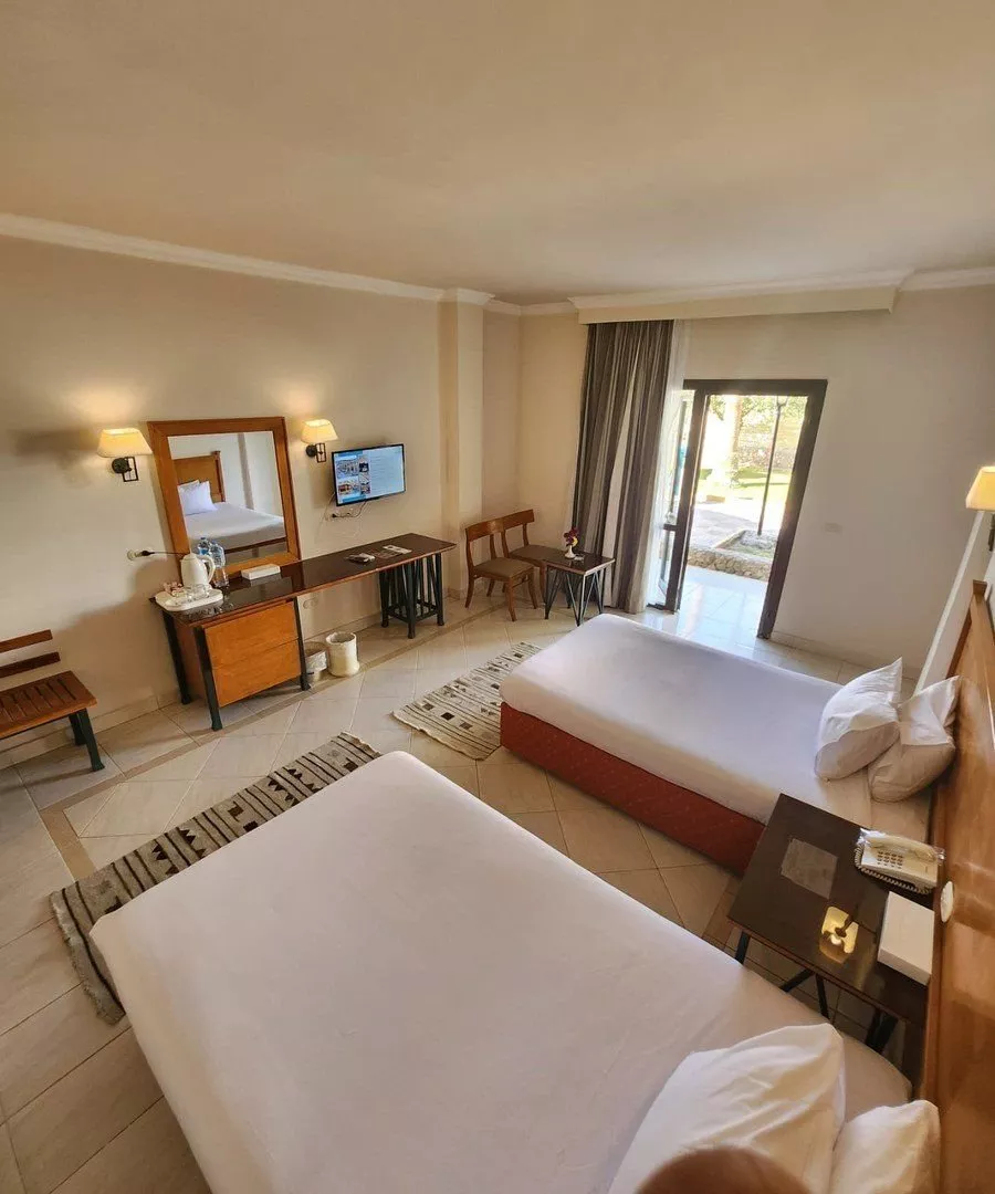 K dispozícii je 417 izieb rôznych typov, vrátane štandardných izieb, superior izieb a bungalovov, všetky vybavené klimatizáciou, SAT TV, minibarom a trezorom. Z niektorých izieb sa ponúka výhľad na záhradu, bazén alebo more.