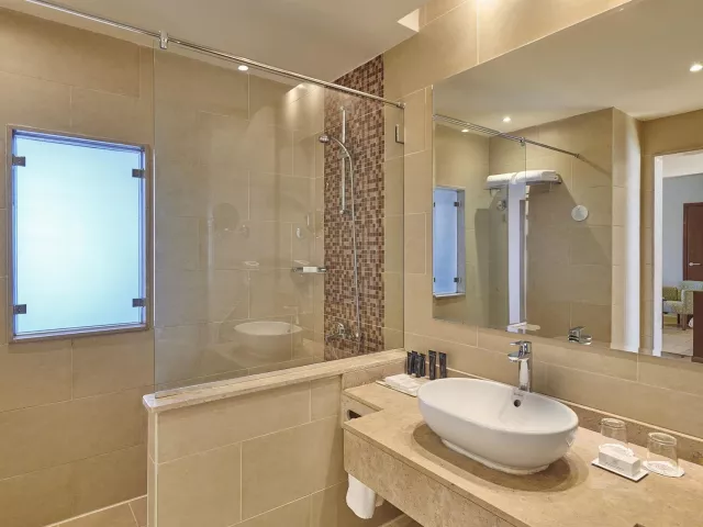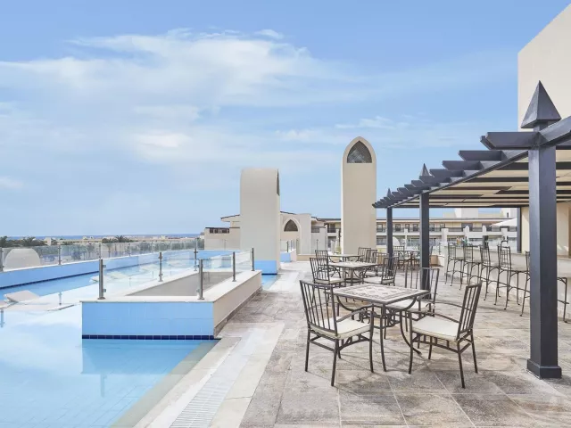 Luxusný hotelový rezort ponúka moderné vybavenie vrátane 725 izieb, vstupnej haly s recepciou, vysoko rýchlostného WiFi pripojenia, rôzne reštaurácie, dvoch à la carte reštaurácií (talianska a medzinárodná), panoramatického baru na streche a plážového baru. V areáli hotela sa nachádzajú aj vonkajšie bazény (vrátane vyhrievaných) a exkluzívny aquapark s toboganmi a lenivou riekou.