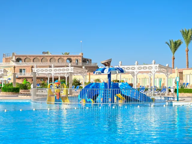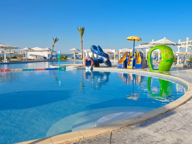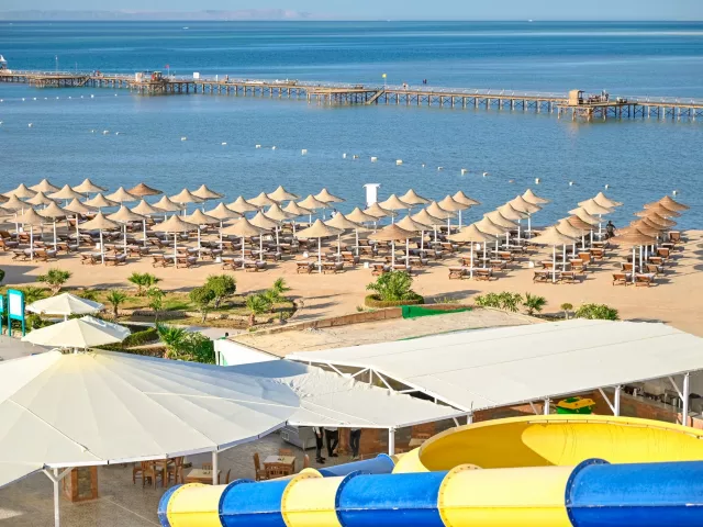 Sunrise Aster Aqua Park Resort sa nachádza severne od Hurghady v malebnej palmovej záhrade na pobreží krištáľovo-priezračného mora. Tento obľúbený hotel so štyrmi hviezdičkami ponúka vysokú úroveň služieb a širokú škálu športových aktivít. Je ideálny pre rodiny s deťmi a menej náročných hostí všetkých vekových kategórií.