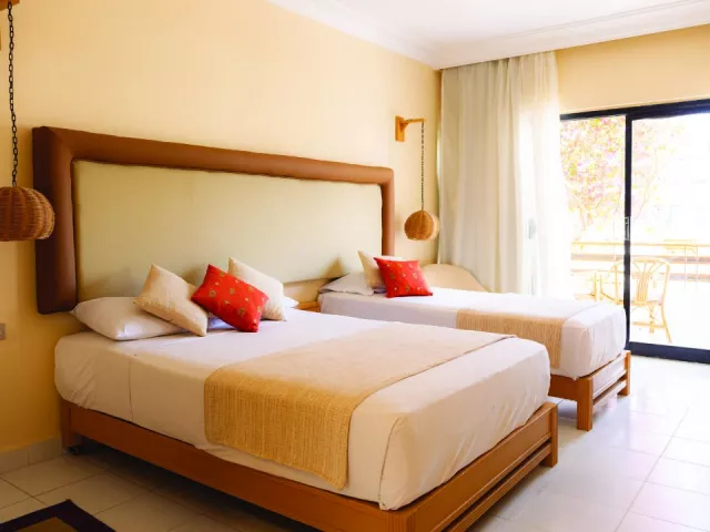 - Rodinné izby: Majú extra spálňu a ponúkajú výhľad na bazén alebo záhradu.