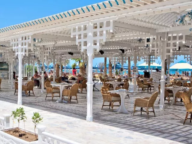 Hotel ponúka koncept All inclusive, ktorý zahŕňa raňajky, obedy, večere, snacky a lokálne nealkoholické a alkoholické nápoje počas celého dňa. Plážový bar a bar pri bazéne sú otvorené od 10:00 do 17:00. Nosenie All inclusive náramkov je povinné a rezervácie na reštaurácie v "Grand Mall" sú potrebné deň vopred.