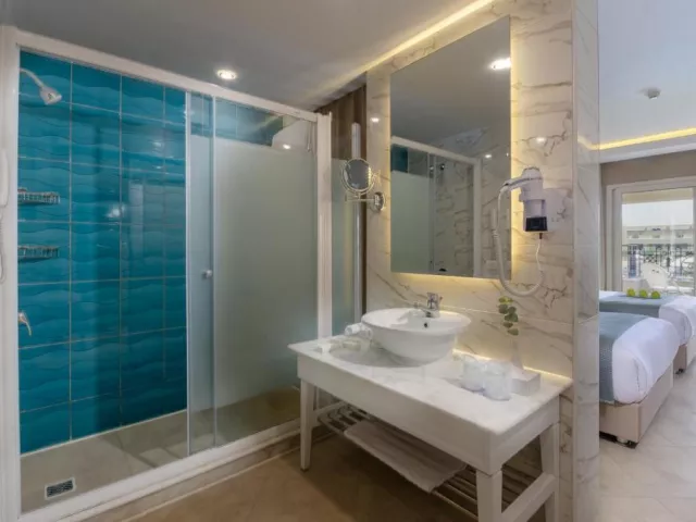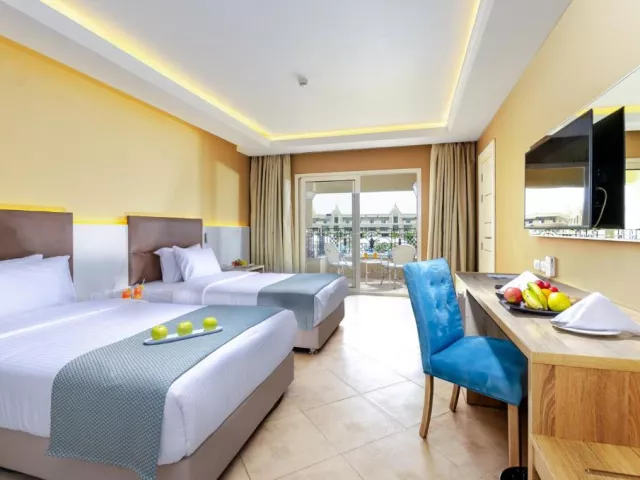 Hotel ponúka moderné dvojlôžkové izby s klimatizáciou, LCD TV, minibarom (denne dopĺňaným) a balkónom alebo terasou. K dispozícii sú aj rodinné izby a izby typu Swim-Up s priamym vstupom do bazéna, vhodné najmä pre dospelých.