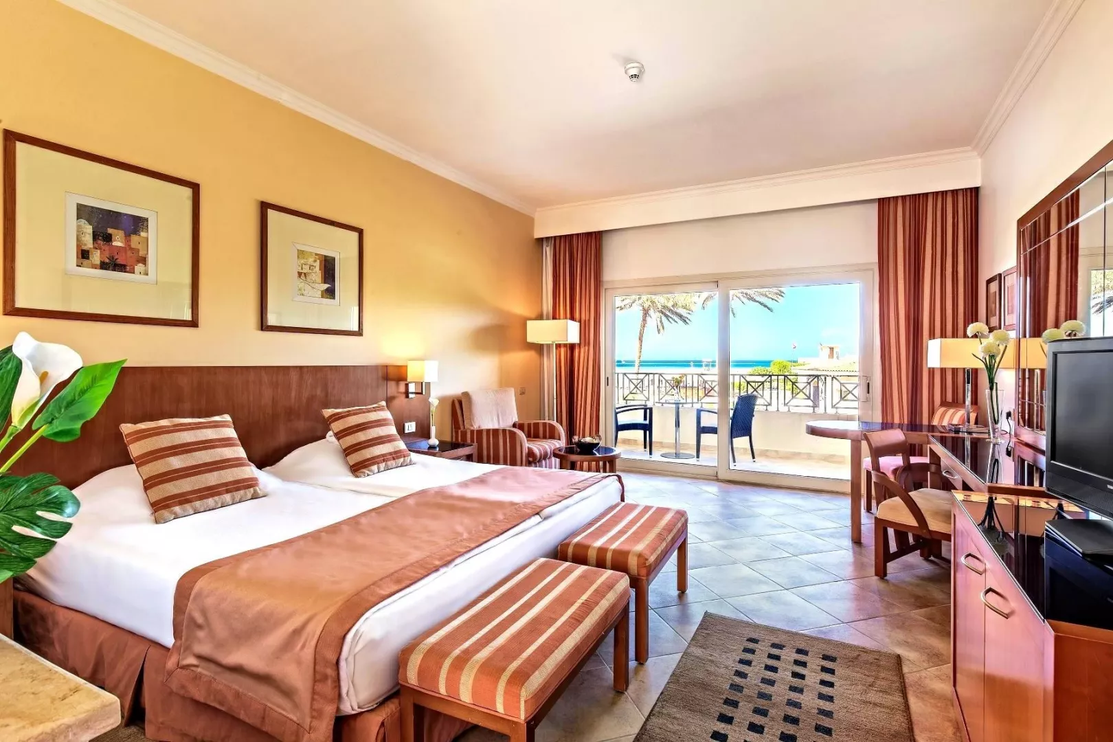 Dvojlôžková izba: kúpeľňa/WC (sušič vlasov), telefón, TV/sat, minibar (zadarmo doplňovaná voda), trezor (zadarmo), set na prípravu kávy a čaju, indviduálna klimatizácia, balkón alebo terasa. Ostatné typi izieb ( pokiaľ nieje uvedené inak, majú izby vyšie uvedené zariadenie) Dvojlôžková izba výhľad na more : výhľad na more Dvojlôžková izba deluxe premium, výhľad do zýhrady : modernejšie Rodinná izba: 2 oddelené spálne Dvojlôžková izba Deluxe Premium Beach Front: modernejšie, balkón/terasa, bližšie k pláži
