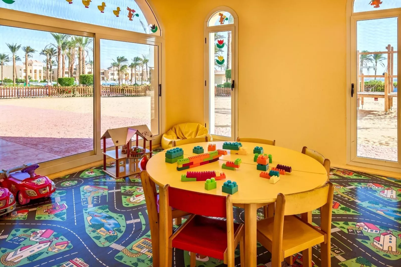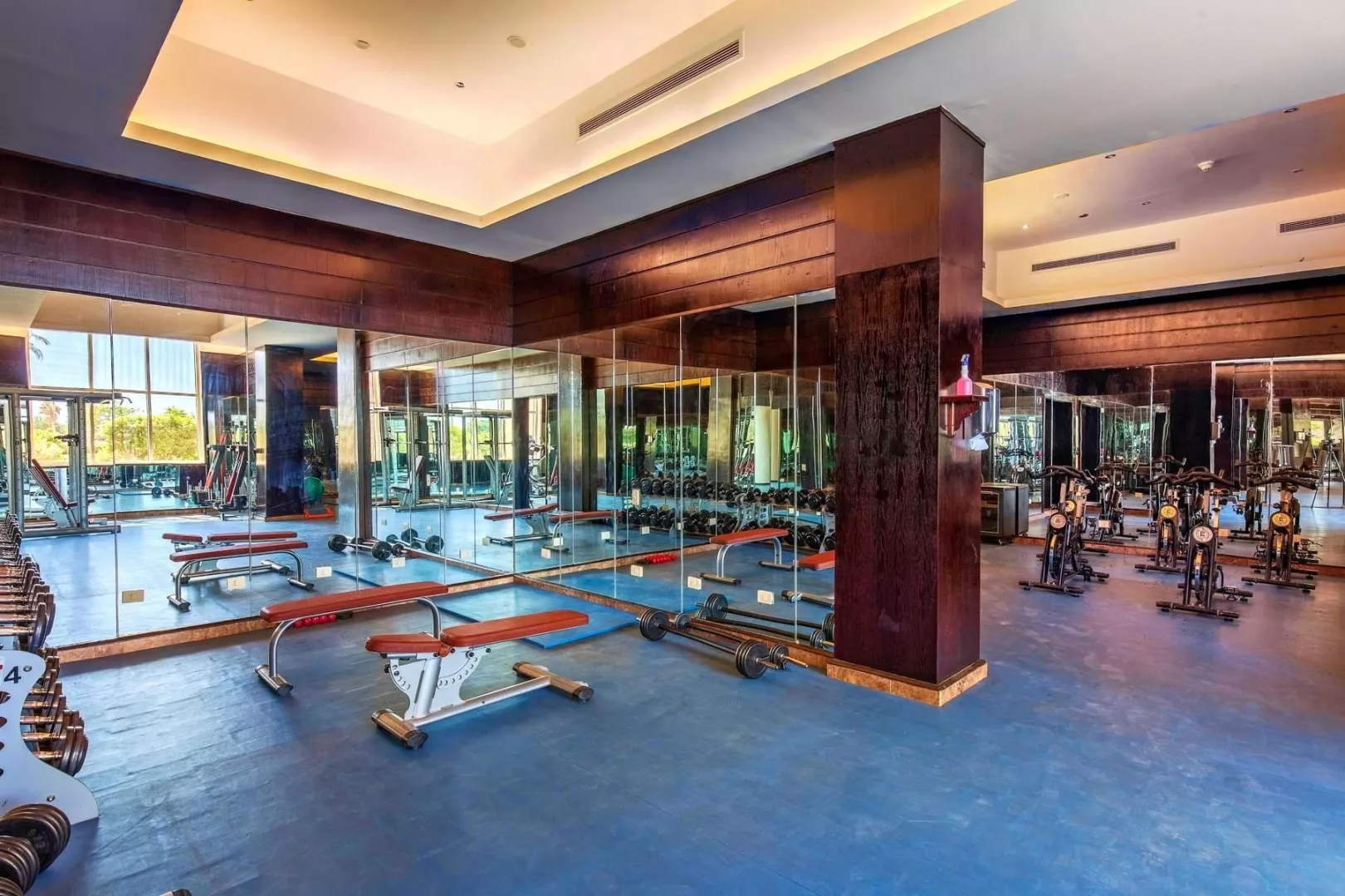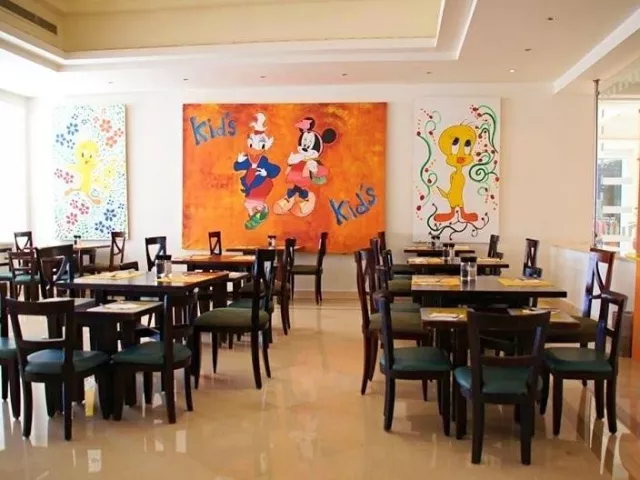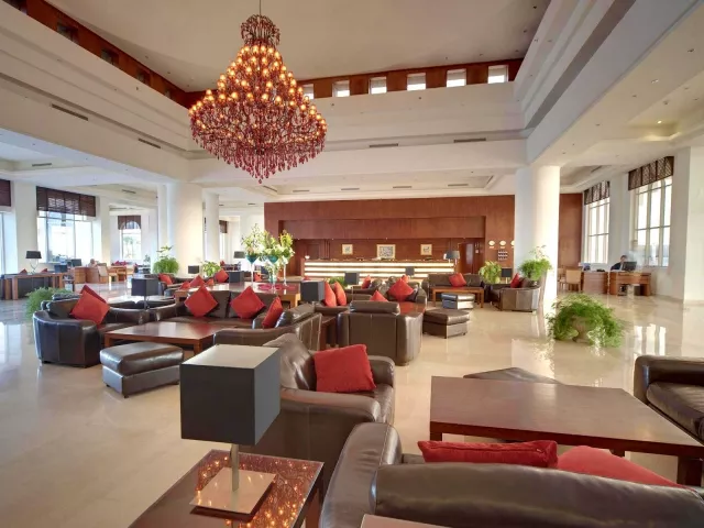 Vstupná hala s recepciou, hlavná reštaurácia, reštaurácia á la carte (rybia, talianská)- každá 1x za pobyt zadarmo, rezervácia nutná, lobby bar, bar pri bazéne, bar na pláži, 8 bazénov (1 s možnosťou vyhrievania v zimnom období), lehátka, slnečníky a osušky zadarmo, detské ihrisko, detský bazén, miniklub, obchodná galéria.