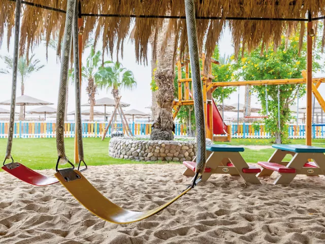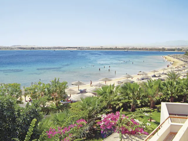 Súkromná piesočnatá pláž sa nachádza priamo pri hoteli. Pozvoľný vstup do mora je miestami cez korálové podložie, preto sa odporúča vhodná obuv do vody. Na pláži sú k dispozícii bary, sprchy a toalety, ako aj lehátka a slnečníky, pričom prvá rada lehátok je za poplatok.