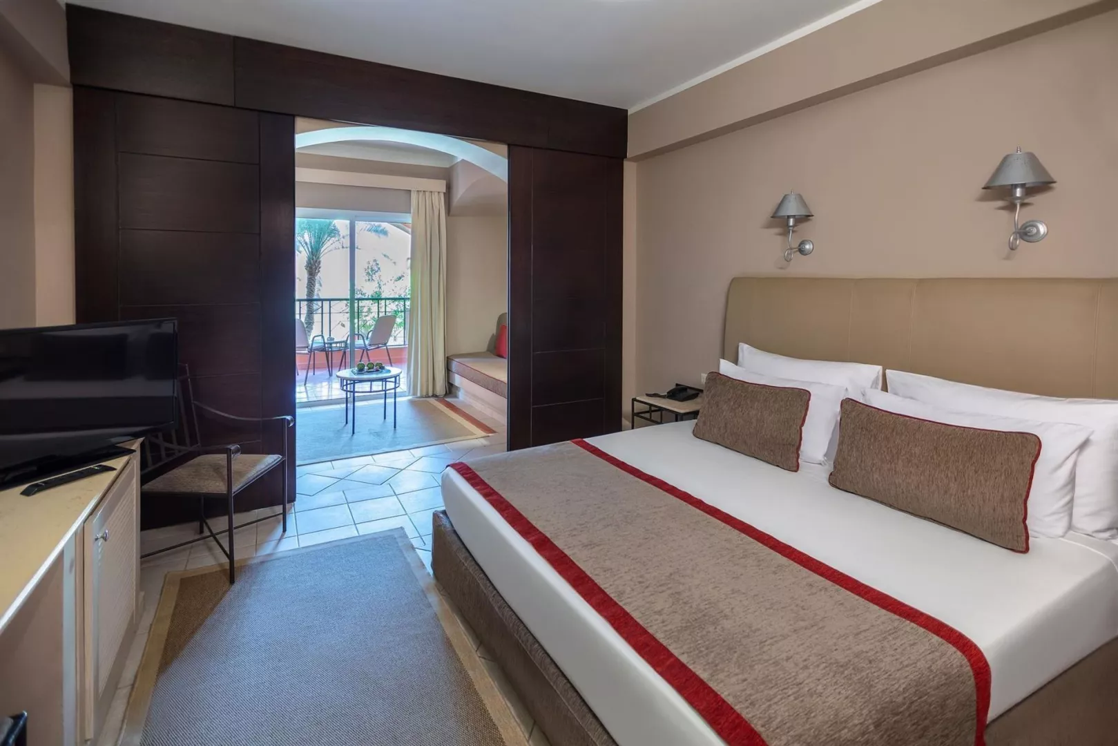 Izby sú vybavené klimatizáciou, televízorom, trezorom, minibarom (za poplatok), telefónom a Wi-Fi (zdarma). K dispozícii sú rôzne typy izieb, vrátane dvojlôžkových Superior izieb, rodinných izieb s výhľadom do záhrady a bazéna, ktoré ponúkajú priestrannosť a pohodlie.