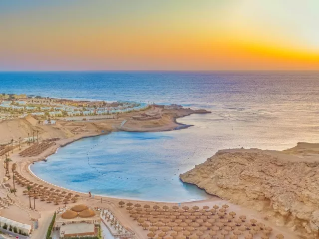 Siva Golden Bay Makadi sa nachádza nad krásnou zátokou Sharm El Arab plnou podmorského života v oblasti Makadi Bay. Je súčasťou chránenej oblasti a vďaka svojej jedinečnej atmosfére bola vybraná ako vhodné prostredie na natáčanie jedného z českých filmov. Vstup do mora je piesočnatý a celá zátoka je lemovaná krásnym koralom, vďaka čomu hotel hodnotíme ako 5*. Rodiny s deťmi môžu využiť detský bazén alebo bazén so šmykľavkami. Klienti vyhľadávajúci pokojnú dovolenku určite ocenia krásne a tiché zákutia jednej z najkrajších pláží v destinácii.