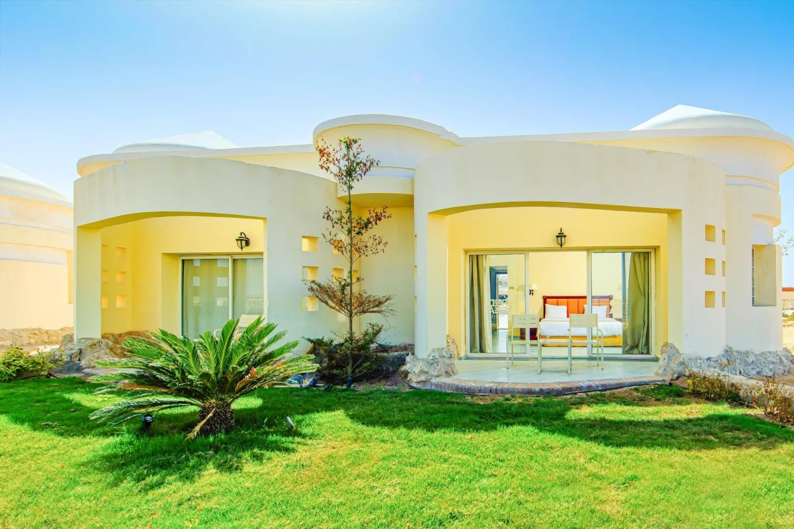 Dvojlôžková izba, Hlavná budova: klimatizácia, telefón, TV so satelitným príjmom, minibar (zdarma doplňovaná voda), trezor (zdarma), kúpeľňa/WC (sušič vlasov), v hlavnej budove, balkón alebo terasa. Ostatné typy izieb (pokiaľ nie je uvedené inak, majú izby vyššie uvedené vybavenie) Jednoposteľová izba, Hlavná budova Dvojlôžková izba, Bungalow: priestrannejšie, v záhrade. Jednolôžková izba, Bungalov Izby zodpovedajú kategórii 4*