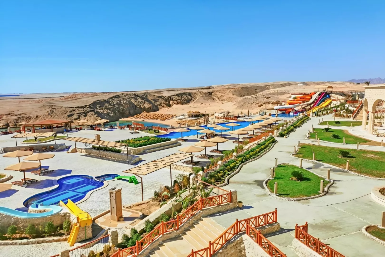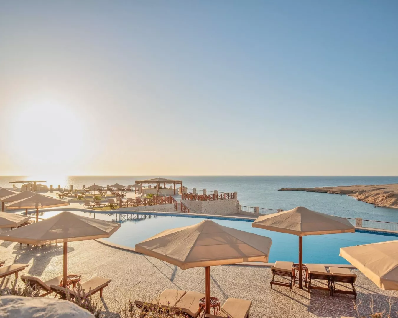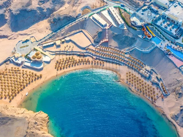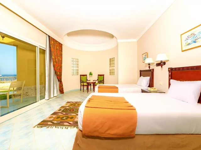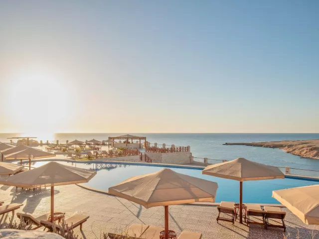Siva Golden Bay Makadi sa nachádza na útese v oblasti Makadi Bay s prekrásnym výhľadom na záliv Sharm El Arab, ktorý je chránenou prírodnou oblasťou. V zátoke pod morskou hladinou nájdete nedotknutý podmorský život, vďaka čomu hodnotíme hotel ako 5*. Piesočná pláž sa nachádza priamo pri hoteli a je dostupná po schodoch prípadne je možné využiť shuttle bus. Letisko Hurghada je vzdialené cca 32 km a letisko Marsa Alam cca 192 km. Centrum Hurghady je cca 35 km a nákupné možnosti sú priamo v hoteli.