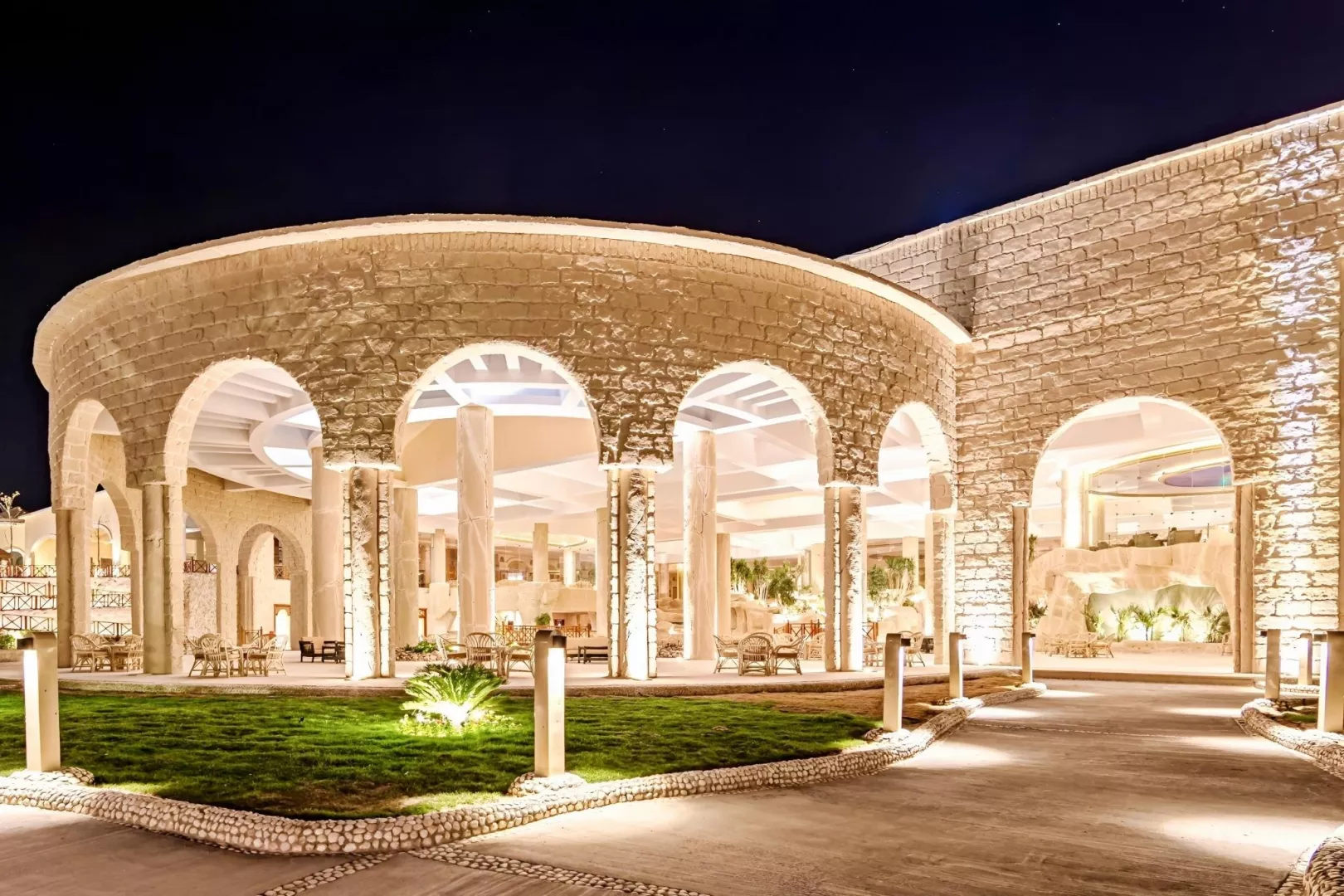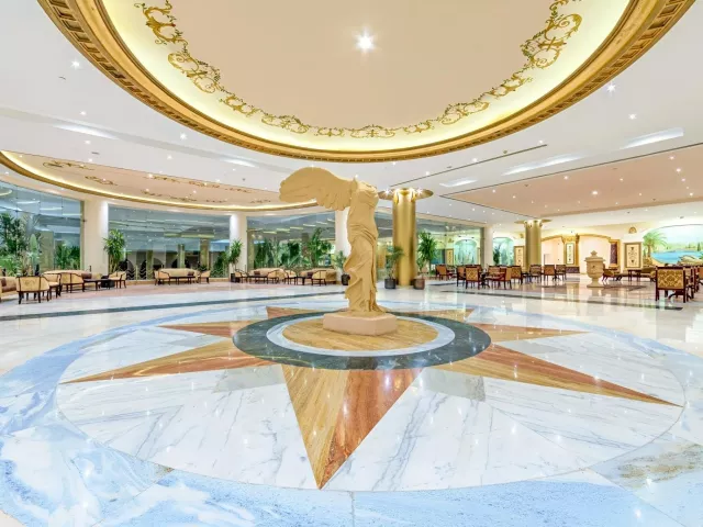 Vstupná hala s recepciou, hlavná reštaurácia, reštaurácia á la carte (orientálna, talianska, mexická) - zdarma, rezervácia nutná, lobby bar, bar pri bazéne, bar na pláži, 3 bazény (1 s možnosťou vyhrievania v zimnom období), lehátka, slnečníky a osušky zdarma, relaxačná zóna s bazénom, šmykľavka.