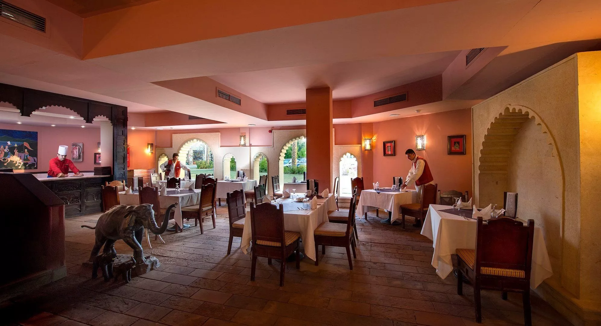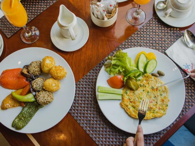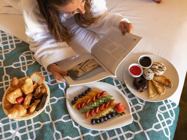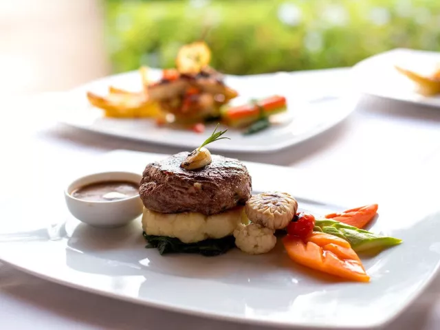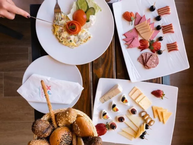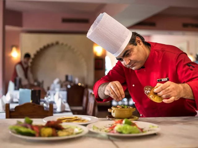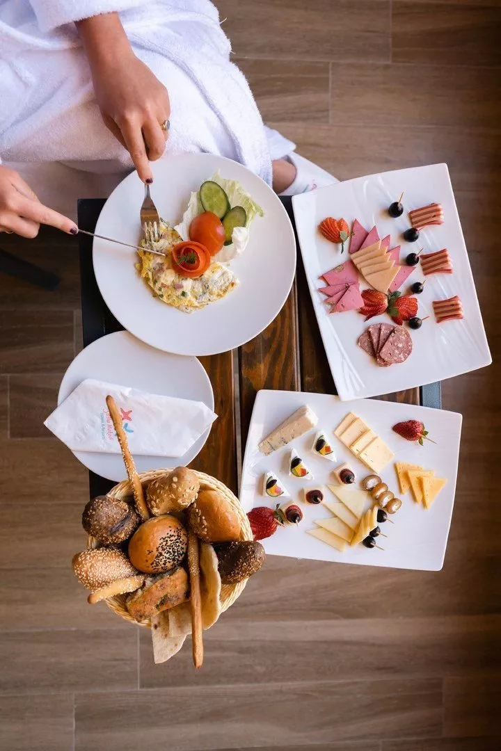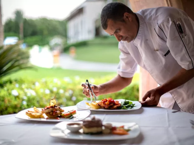 All inclusive ponúka raňajky, obedy a večere formou bufetu, neskoré raňajky, ľahký obed na pláži a popoludňajšie občerstvenie. Nápoje miestnej výroby sú k dispozícii v určených časoch a miestach. K dispozícii sú taktiež 2 večere v reštaurácii à la carte počas pobytu.
