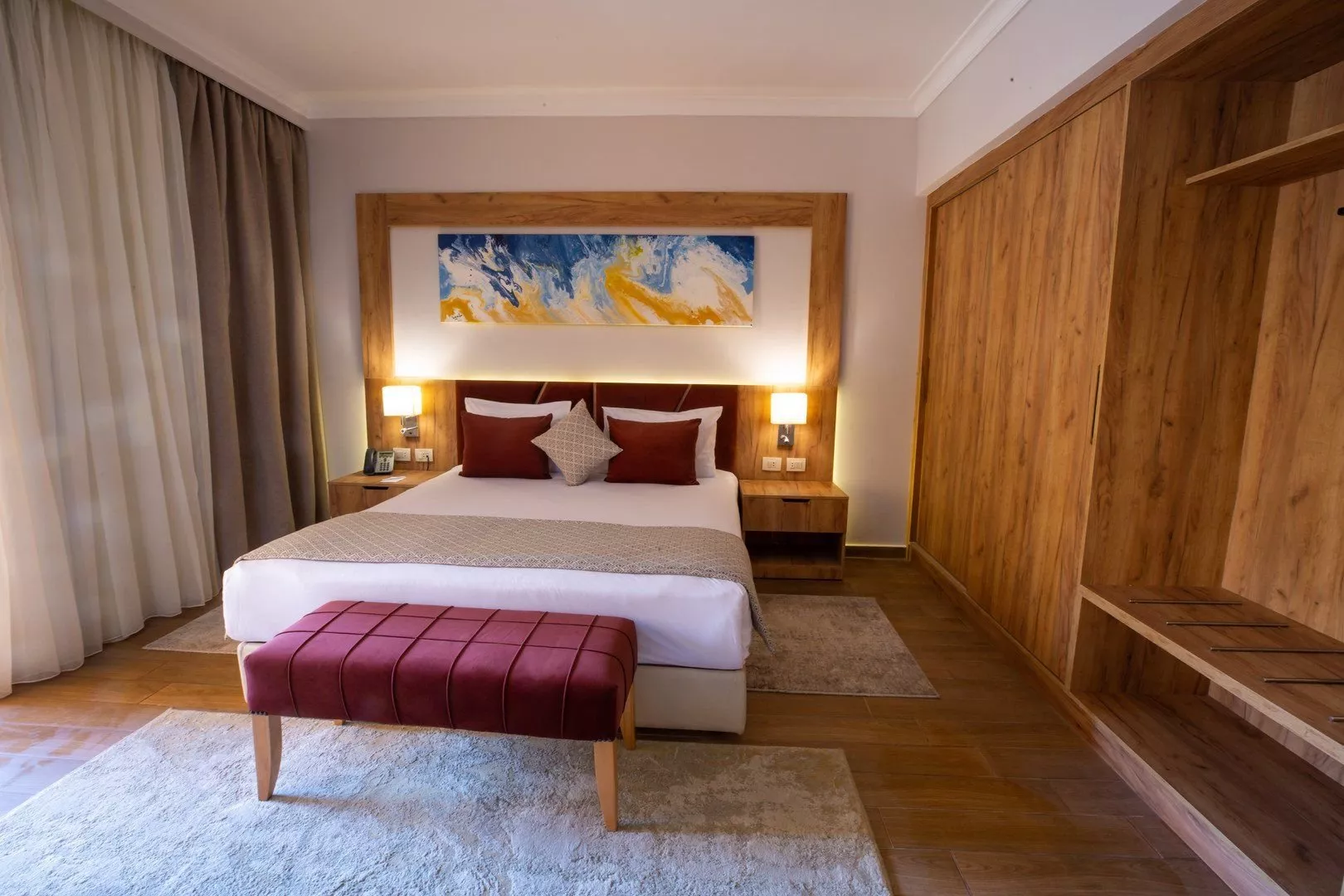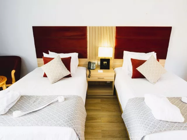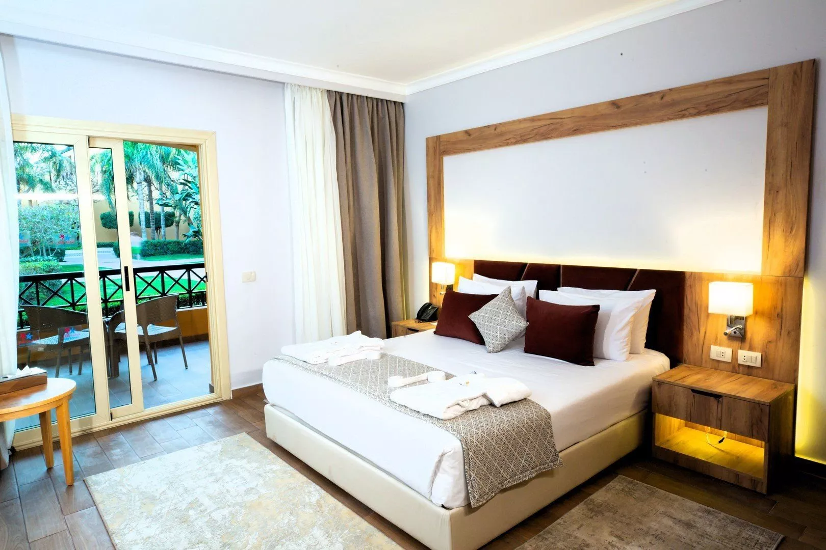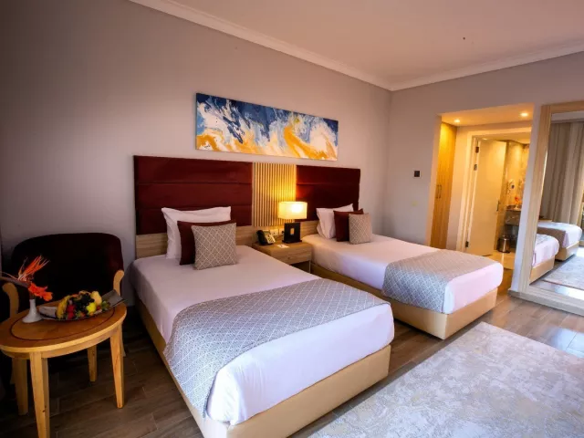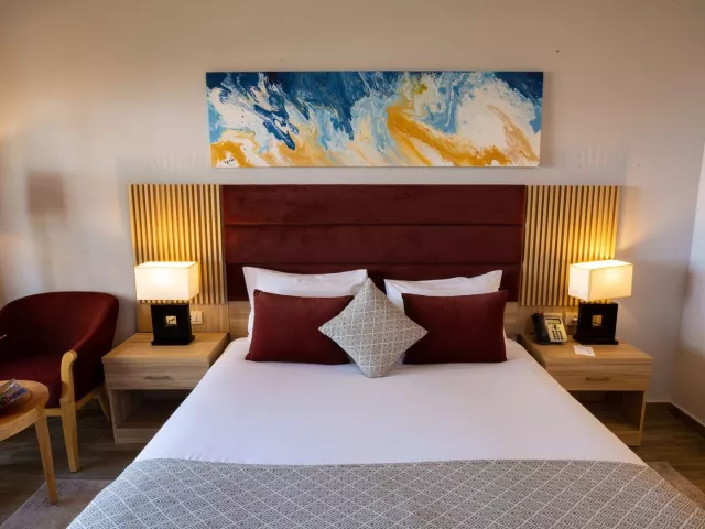 Štandardné dvojlôžkové izby s možnosťou prístelky pre 1 dospelú osobu alebo dieťa sú vybavené vlastným sociálnym zariadením (kúpeľňa, fén, WC), klimatizáciou, SAT/TV, trezorom, minibarmi, setom na prípravu kávy/čaju, pripojením na WiFi (za poplatok) a balkónom alebo terasou. Za príplatok sú k dispozícii izby s výhľadom na bazén, s výhľadom na more alebo rodinné izby.