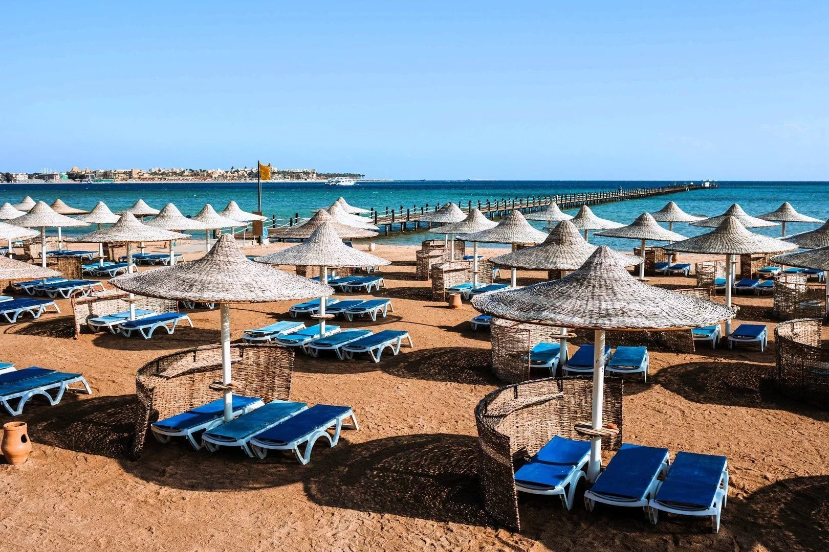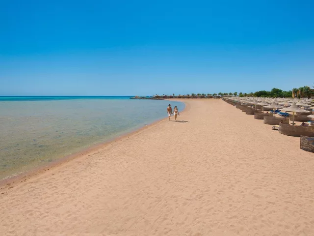 Na pláži pri hoteli je pekná piesočnatá pláž s prístupom do mora a priamo ku korálom po 380 m dlhom mole. Lehátka, slnečníky a osušky sú k dispozícii zdarma, pričom je tu aj bar na pláži.