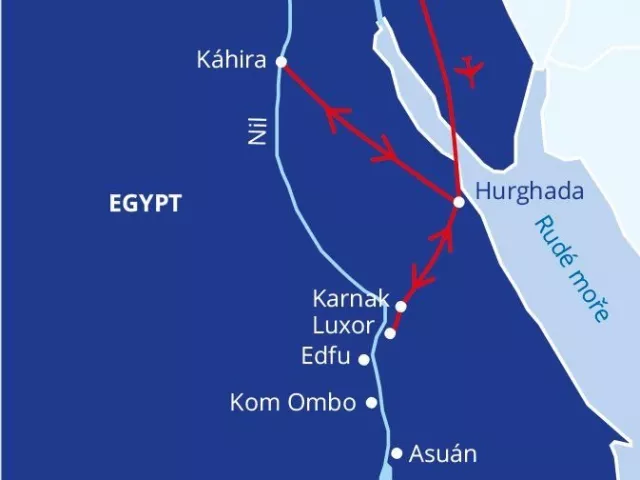 Prvé dni sa začínajú príchodom do Hurghady, kde nasleduje ubytovanie v 4* hoteli s programom all inclusive. Klienti majú možnosť preskúmať krásy Hurghady s voľným časom na relaxáciu pri mori. Počas pobytu sú naplánované výlety do známych historických lokalít.