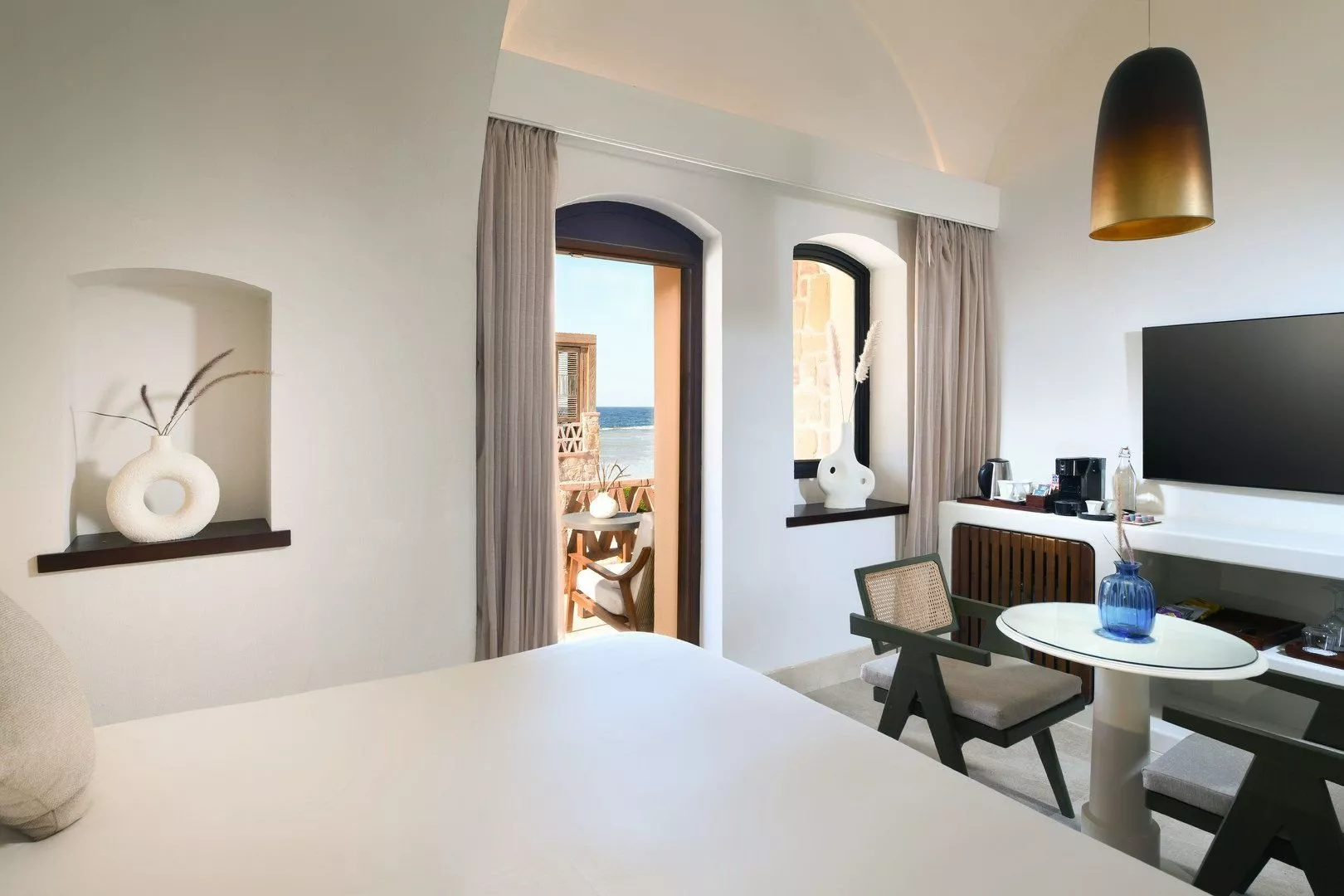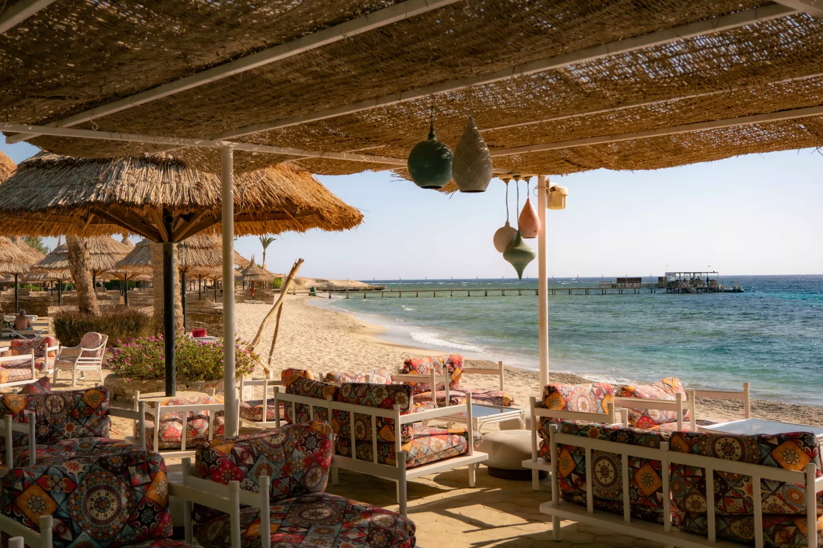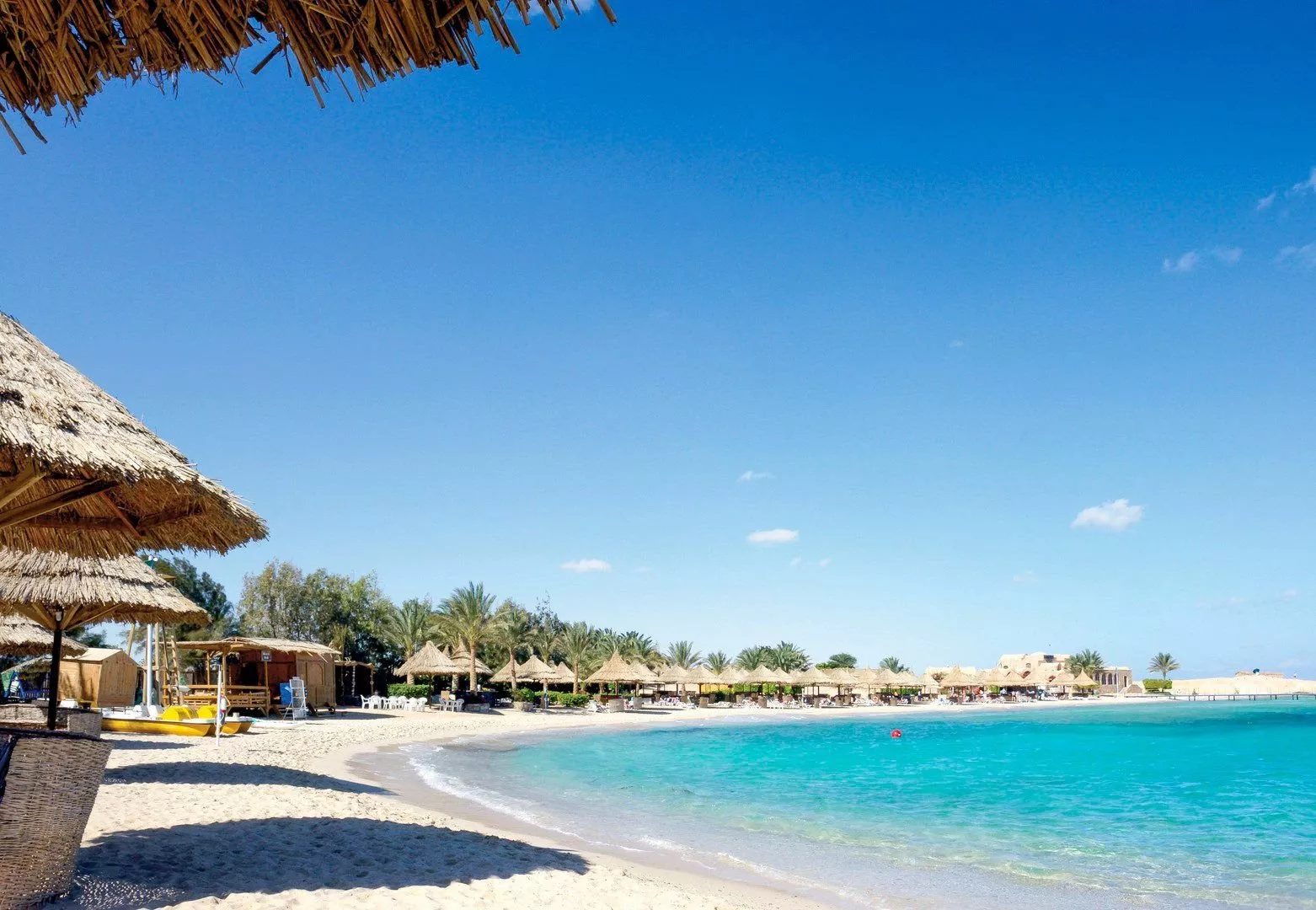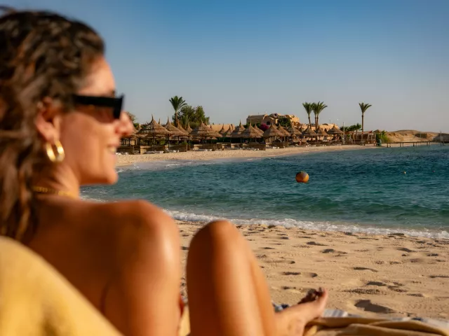 Piesočnatá pláž sa nachádza priamo pri hoteli, s pozvoľným vstupom do mora a korálovým podložím. Odporúča sa nosiť topánky na kúpanie. K dispozícii sú lehátka, slnečníky a osušky zdarma. Vodné športy na pláži sú za príplatok.