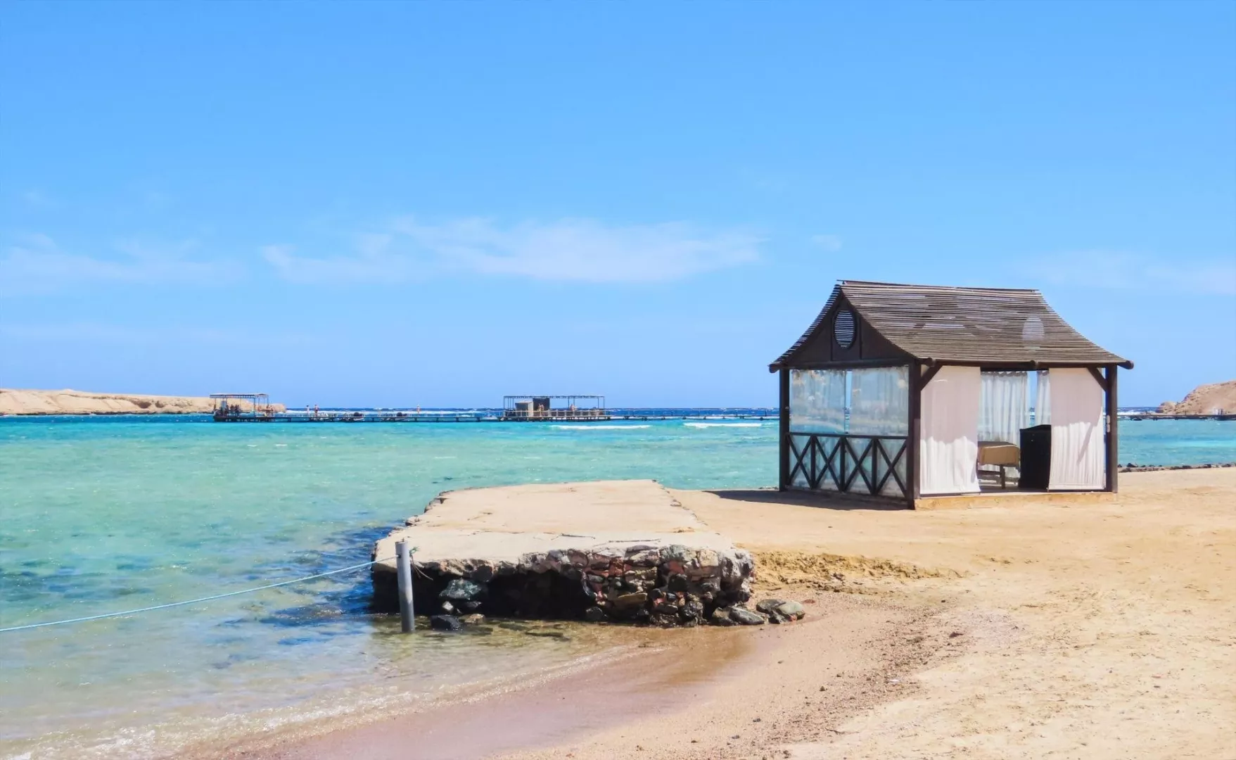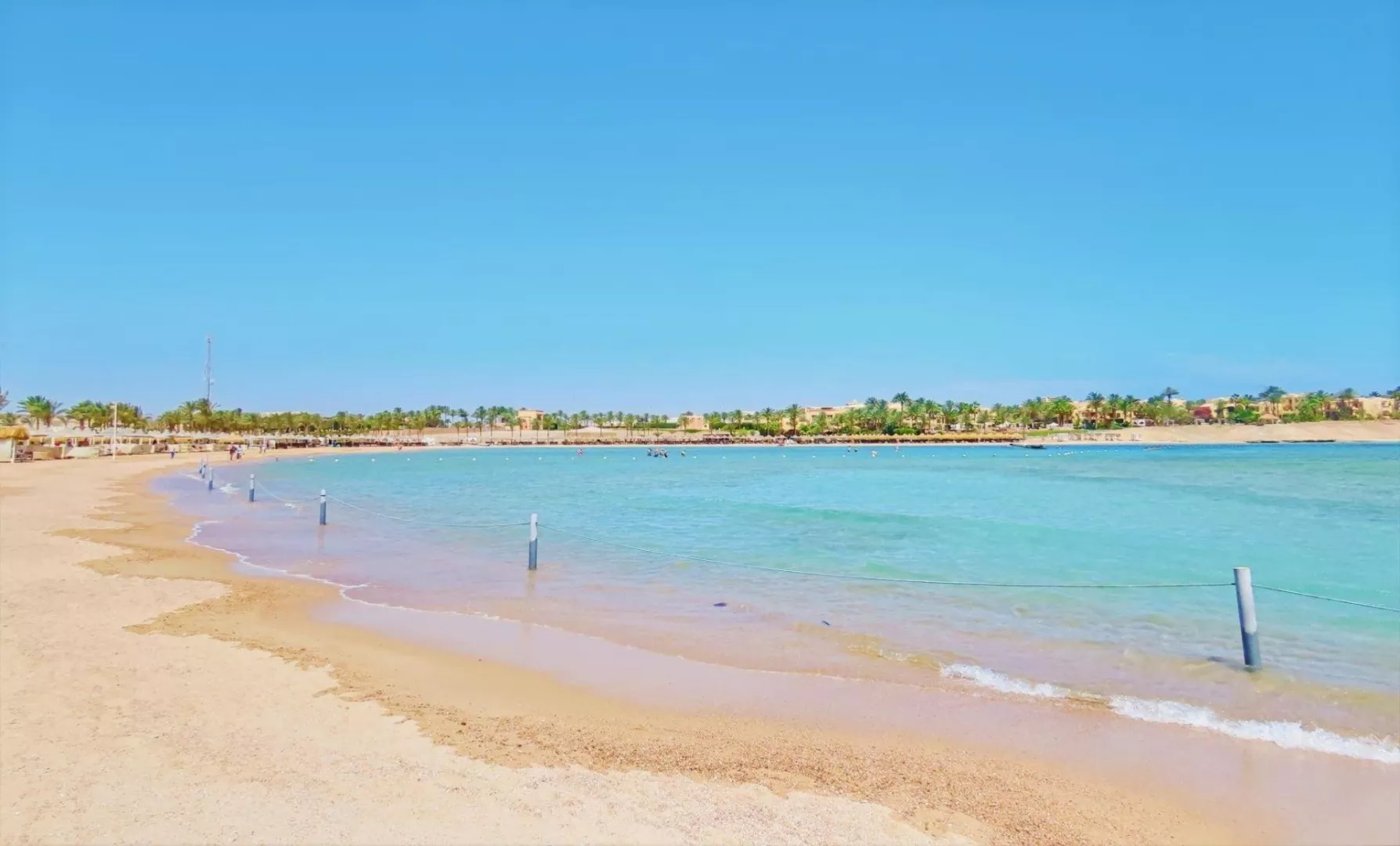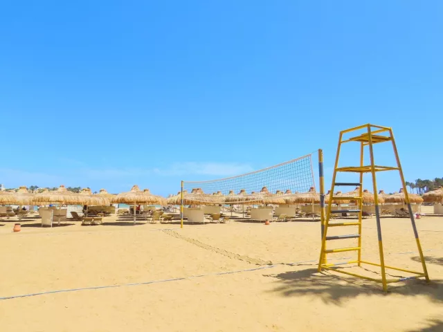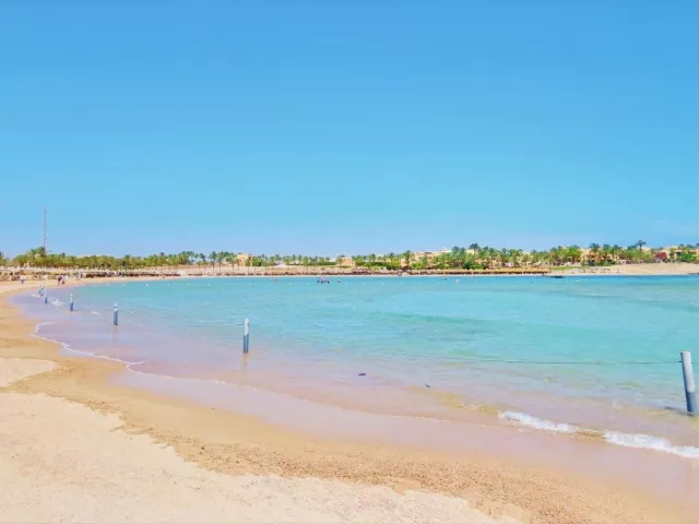 Hotelová písčitá pláž má mierny vstup do mora a je korálová, čo ju robí ideálnou pre potápanie a šnorchlovanie. Pláž je vzdialená cca 400 m od hotela a prístupná cez plážovú promenádu. Na pláži sú k dispozícii lehátka, slnečníky a osušky zdarma, ako aj plážový bar.