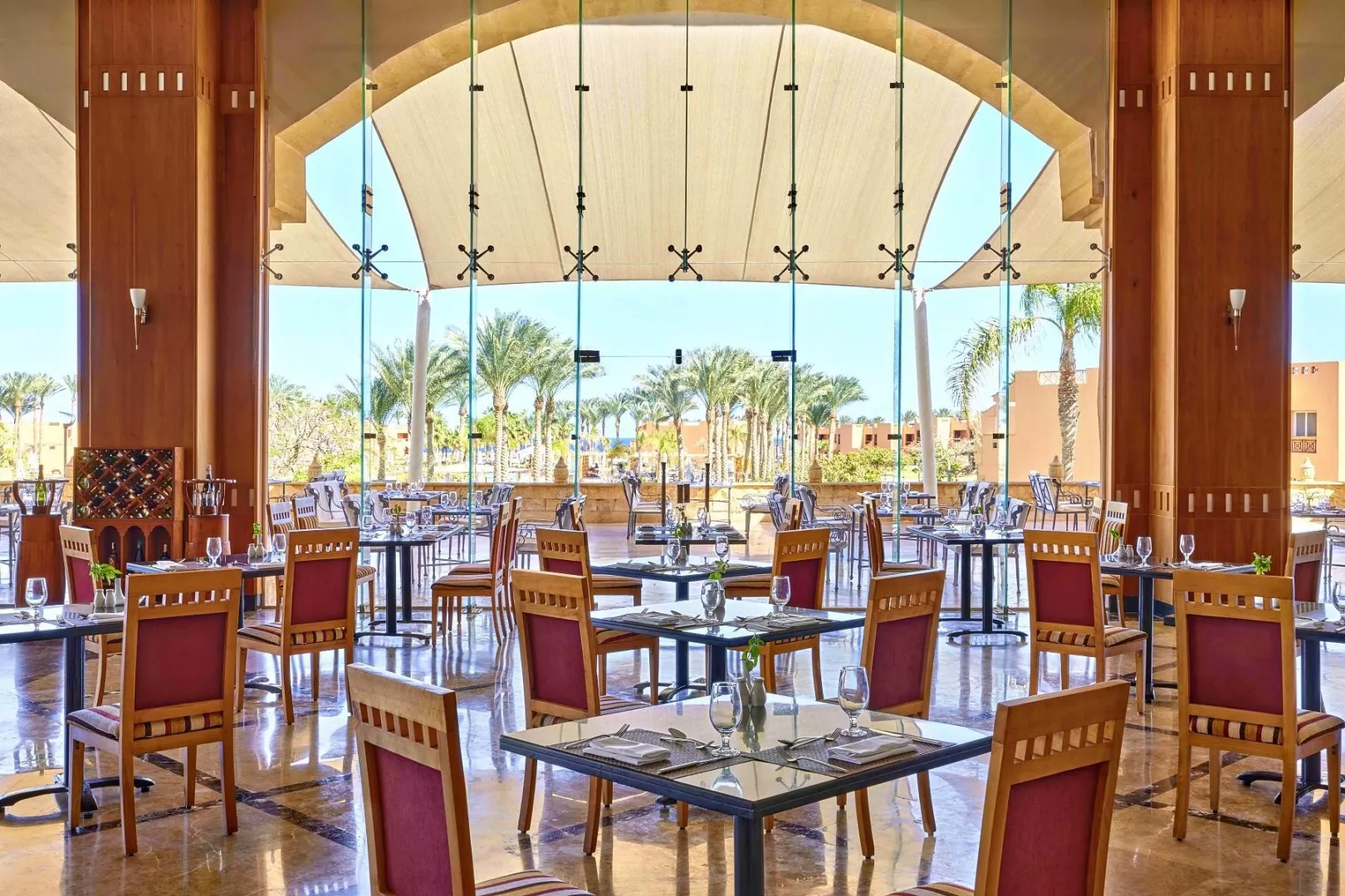 Hotelový komplex ponúka vstupnú halu s recepciou, lobby, hlavnú reštauráciu a tri reštaurácie à la carte (rezervácia nutná). Ďalej sú k dispozícii bary, konferenčná miestnosť, obchody so suvenírmi, lekáreň a bankomat. Vonku sa nachádza záhrada, dva bazény (jeden v zime je vyhrievaný), lehátka, slnečníky a osušky sú zdarma, taktiež bar pri bazéne. Hotel má bufetovú reštauráciu, tri à la carte reštaurácie, lobby bar, bar pri bazéne a plážovú reštauráciu. K dispozícii je Wi-fi, detský bazén, detské ihrisko a mini klub.