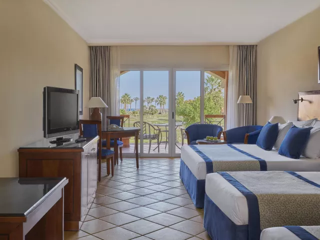 Dvojlôžkové izby typu Superior s výhľadom do záhrady sú vybavené kúpeľňou/WC (so sušičom vlasov), TV/SAT, telefónom, setom na prípravu kávy a čaju, minibarom (za poplatok), trezorom zadarmo a balkónom alebo terasou. K dispozícii sú aj rôzne typy izieb s výhľadom na bazén, bočný výhľad na more a s priamym výhľadom na more. Rodinné izby sú priestrannejšie s výhľadom do záhrady.