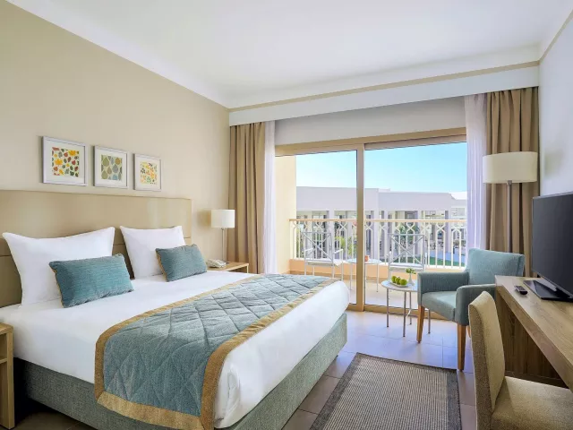 Hotel ponúka 202 izieb, ktoré sú moderne zariadené a vybavené klimatizáciou, satelitnou TV, minibarom (za príplatok), trezorom a balkónom alebo terasou. K dispozícii sú rôzne typy izieb, vrátane Superior a Deluxe, s možnosťou výhľadov na záhradu, bazén alebo more.